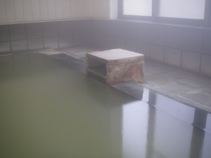 湯船にはうぐいす色に濁ったお湯が張られており、湯温40度で少しぬるめ。