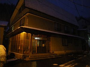 肘折温泉街の一角、直前に立ち寄った旅館「玉乃屋」さんの目の前にあるお宿です。
