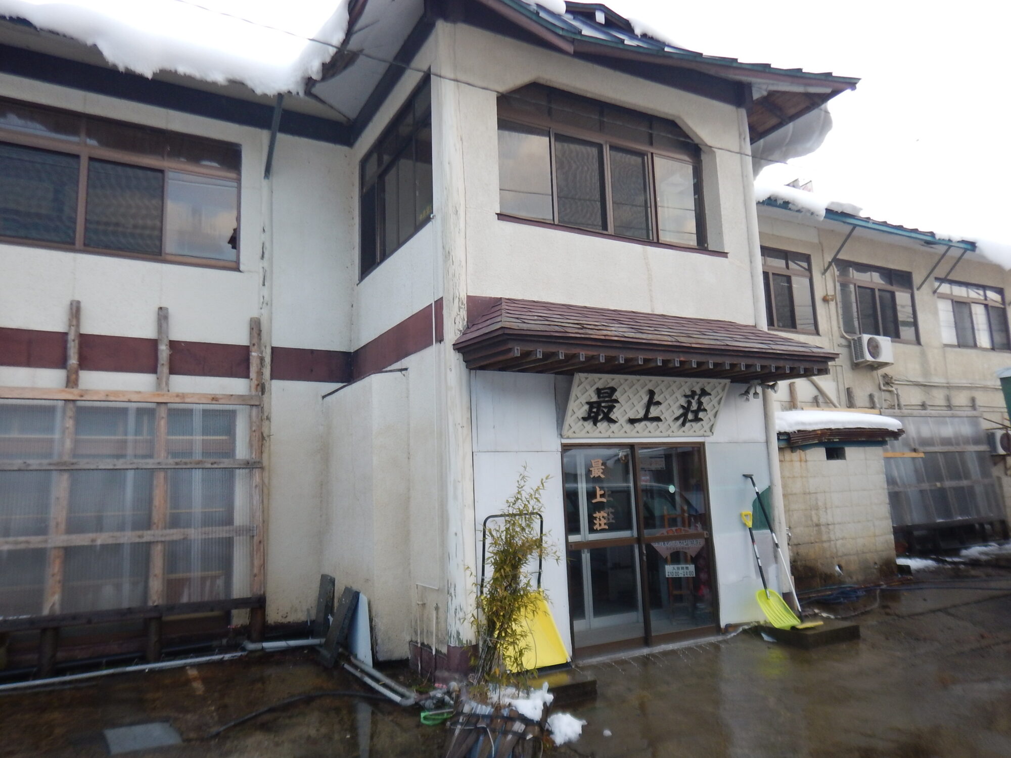 久しぶりの最上荘、最近来ていなかったので営業しているか少し不安でしたが、駐車場に融雪の為のお湯が撒かれているのを確認してホッと胸を撫でおろします。