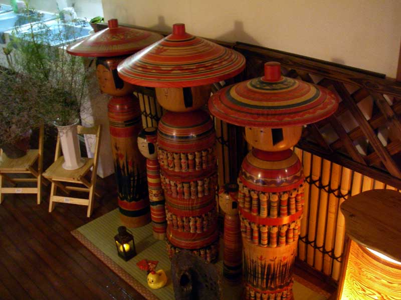 静かな場所にある落ち着いた感じのお宿です。内部も瀟洒に整えられており、こけしなどが見栄え良く並べられていて、女性ウケしそうな印象です。