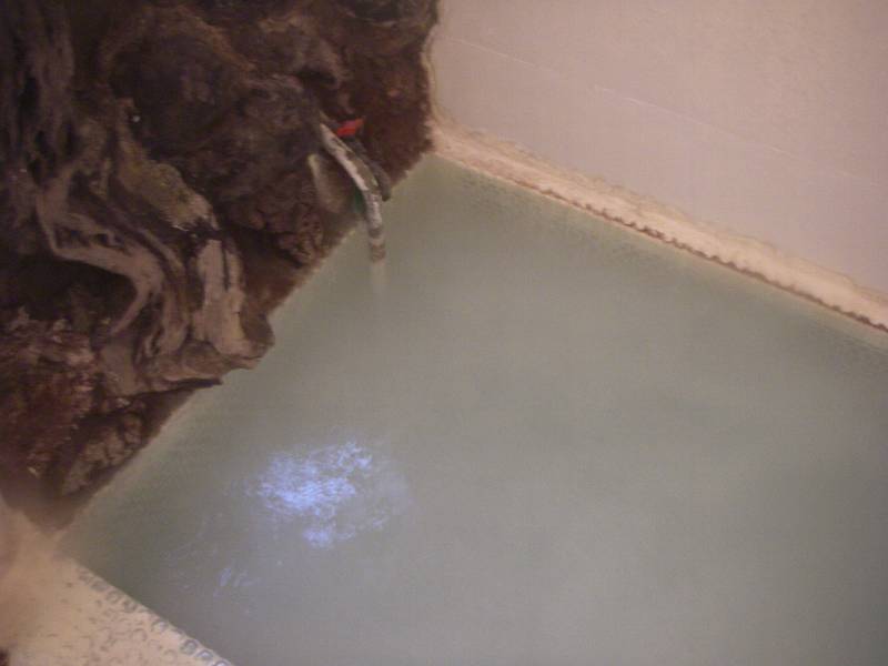 湯船に張られたお湯は、ほんのり青味がかった透明なもので、見た目の特徴は他の源泉とあまり変わりがありません。
