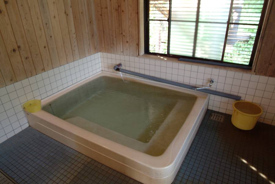 浴室にはホーローの浴槽が一つのみで、4人入れば窮屈と思われる大きさ。