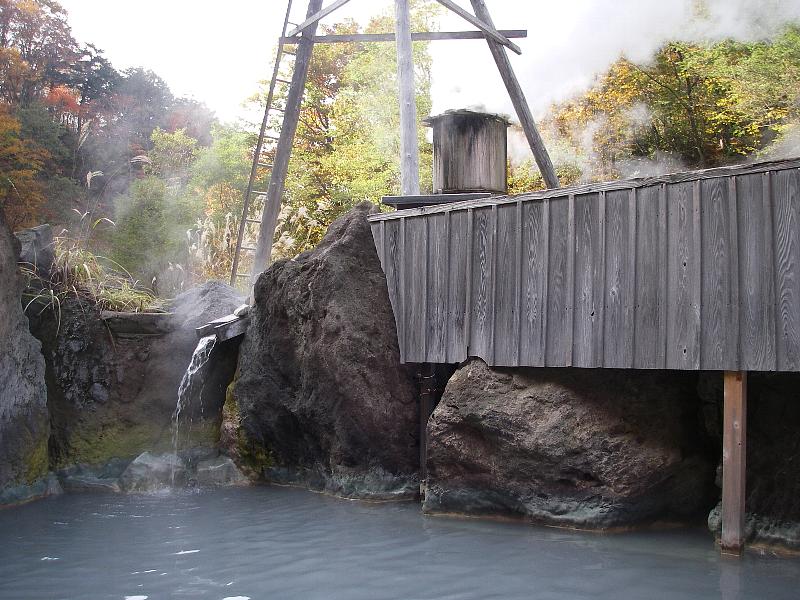露天のすぐ傍に源泉があるようで、煙突のようなものから噴気があがっていました。