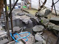 まさかと思って見てみると、鯉が泳ぐ水槽の隣に、確かに露天風呂のような、鯉の泳いでいない湯船らしき物があります。
