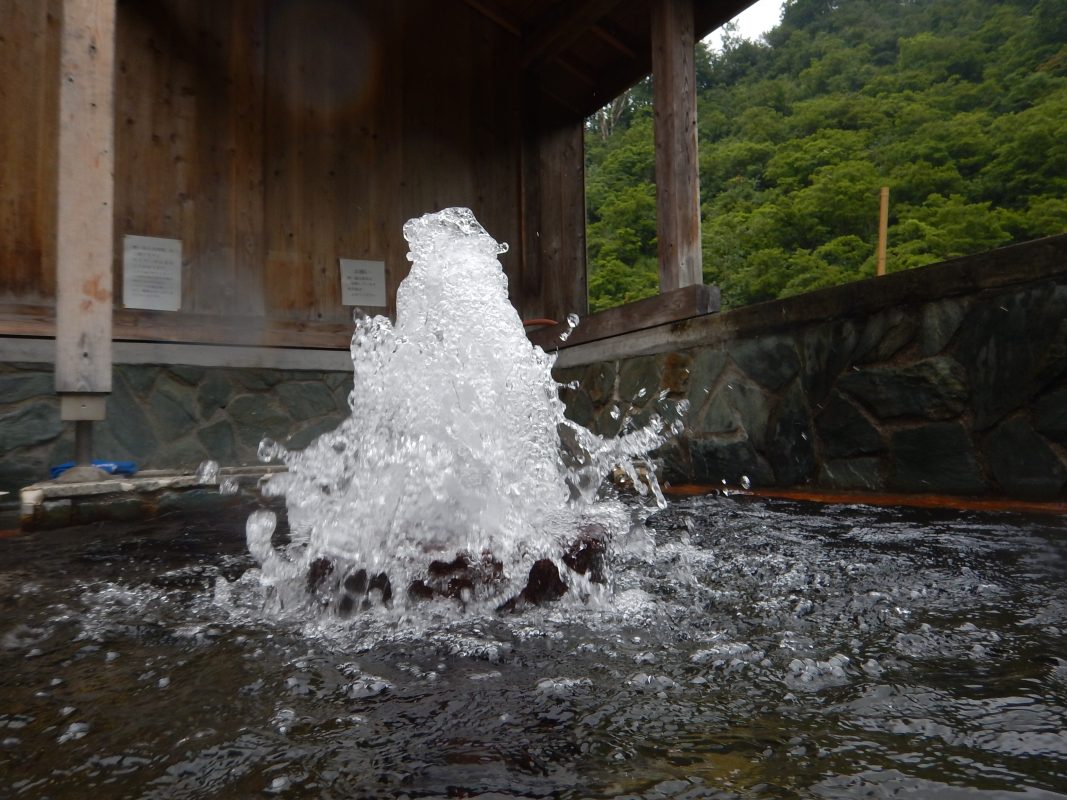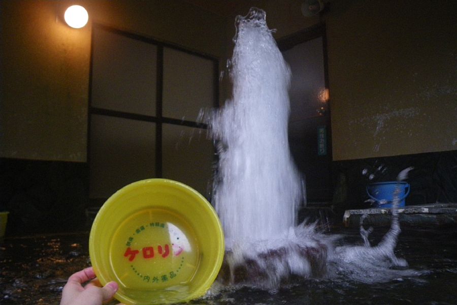 湯船の中央に湯口があり、お湯が垂直に、どばどばと噴出しています。