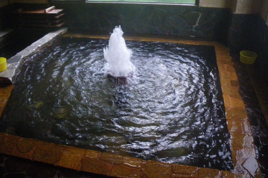 源泉を暖めた物で、体を温める為の物で、必要に応じて蛇口からお湯を注ぎ足す、汲み置きのような湯船です。