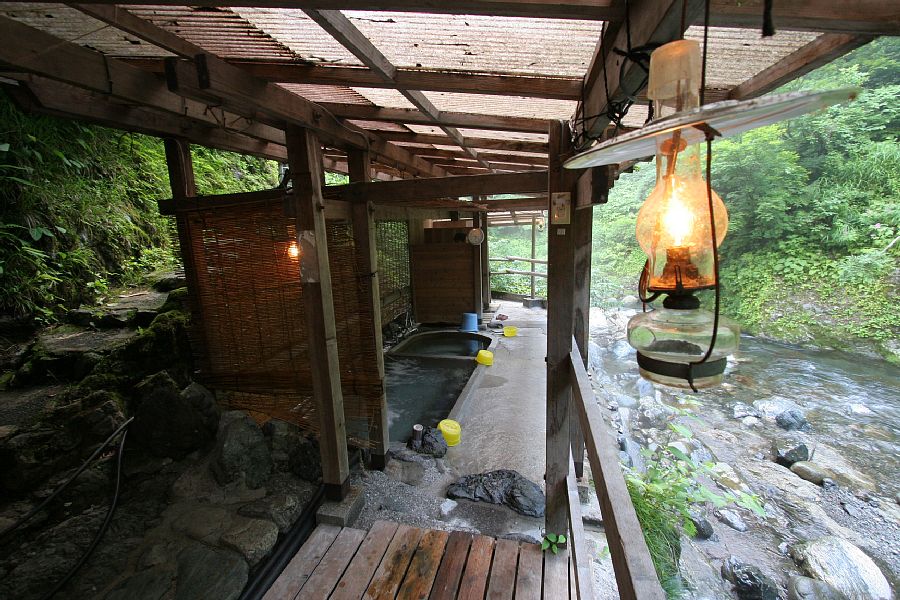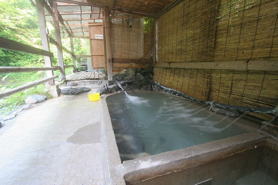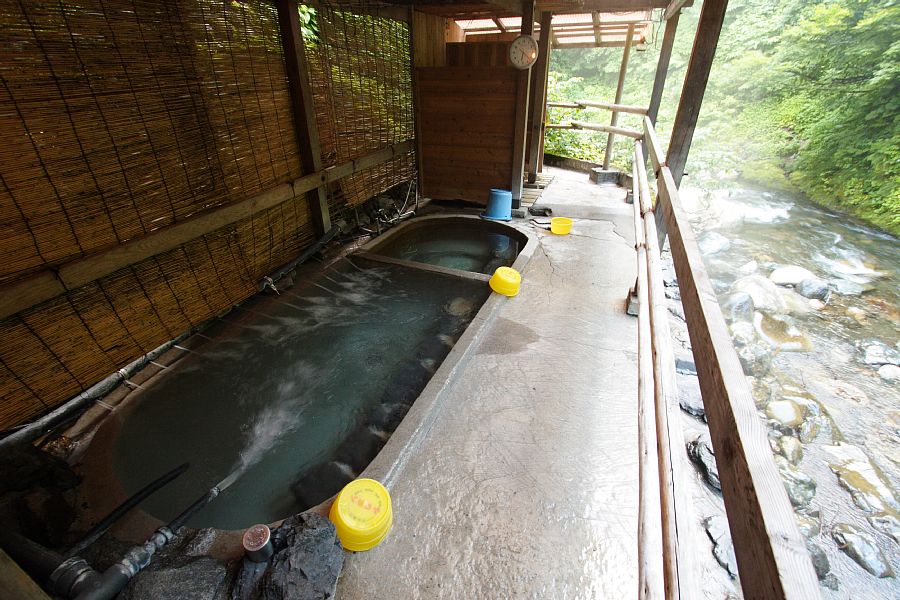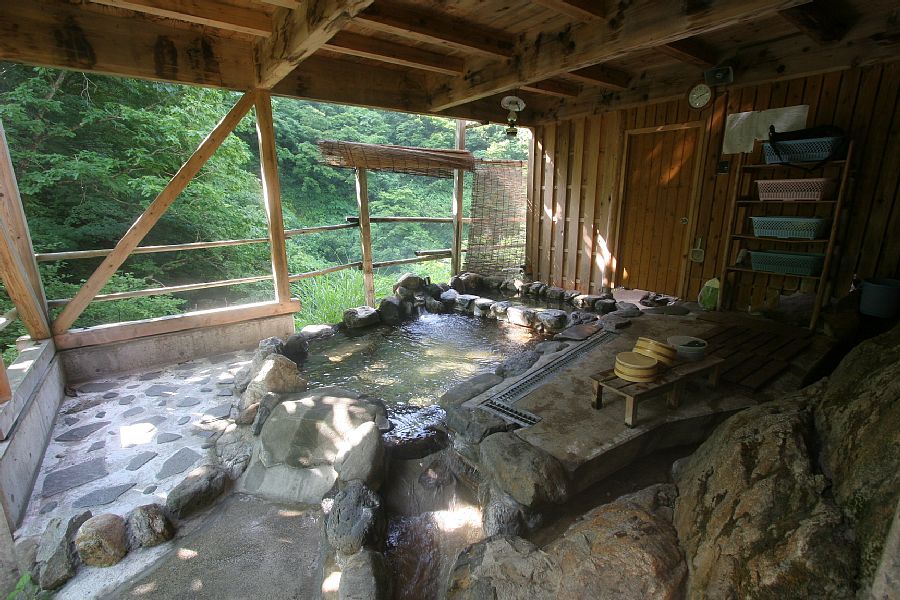 目の前に川が流れる開放的な露天風呂。なんとなく、木賊や、壁湯あたりを彷彿とさせられます。