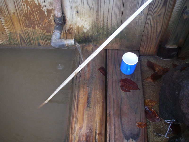 お湯からは、植木屋でも嗅いだ、不思議なアブラ臭。土類臭、臭素臭、木材の焦げたような臭い、そして、灯油系のアブラ臭。実に複雑な臭いで、一言で表現しろと言われても、困ります。実に特徴的な臭いがします。