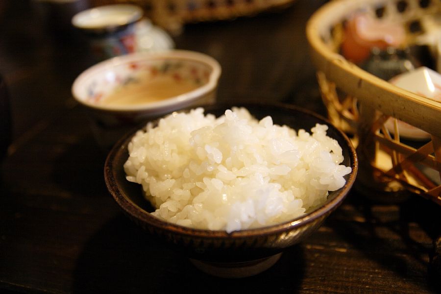 素泊まりでカップ麺が評価基準の私からすると、とんでもなく贅沢な夕食です。でもまあ、それはそれ。感激したのは珍しく食べたマトモな旅館食ではなく、ご飯、つまり、お米なのですね。
