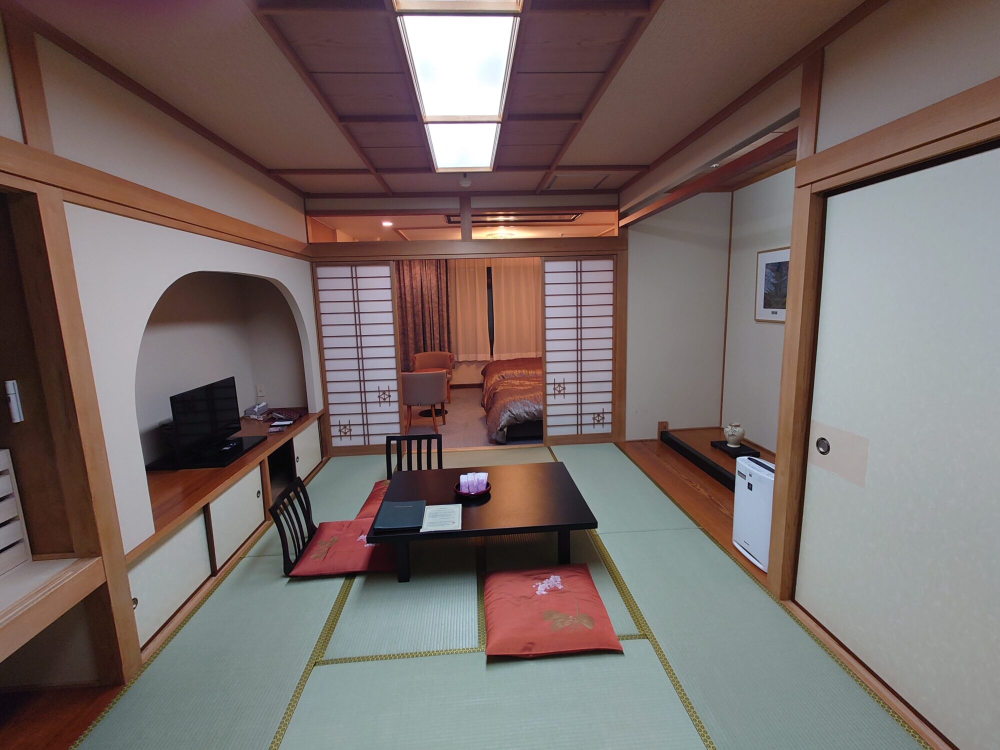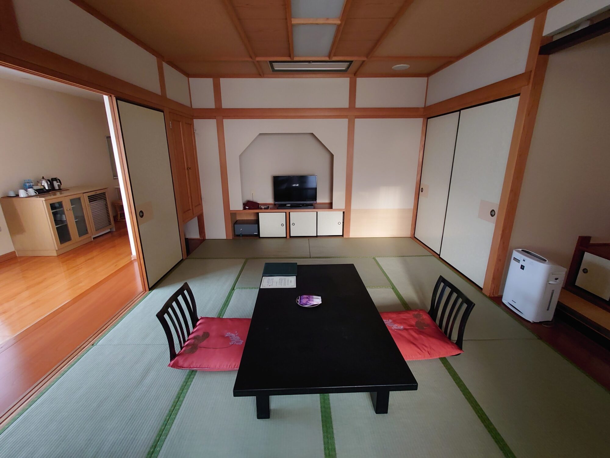 我が家と三女一家は両親の部屋の隣、同じ高千穂館の和洋室 和室10畳+ツイン 54平米です。