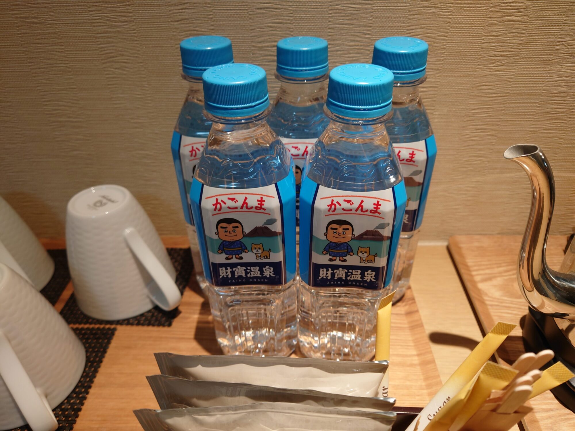 霧島なのに、何故か財寶温泉のペットボトルが置かれていました。