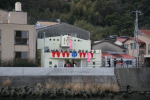対岸から見てもはっきりと分かるように「谷津温泉 立ち寄り湯」と書かれた建物がそれで、物凄く目立ちます。立ち寄り出来るのは建物2階部分のテラスにある足湯のみで、1階にあるお風呂は本来であれば入浴禁止なんですよね。