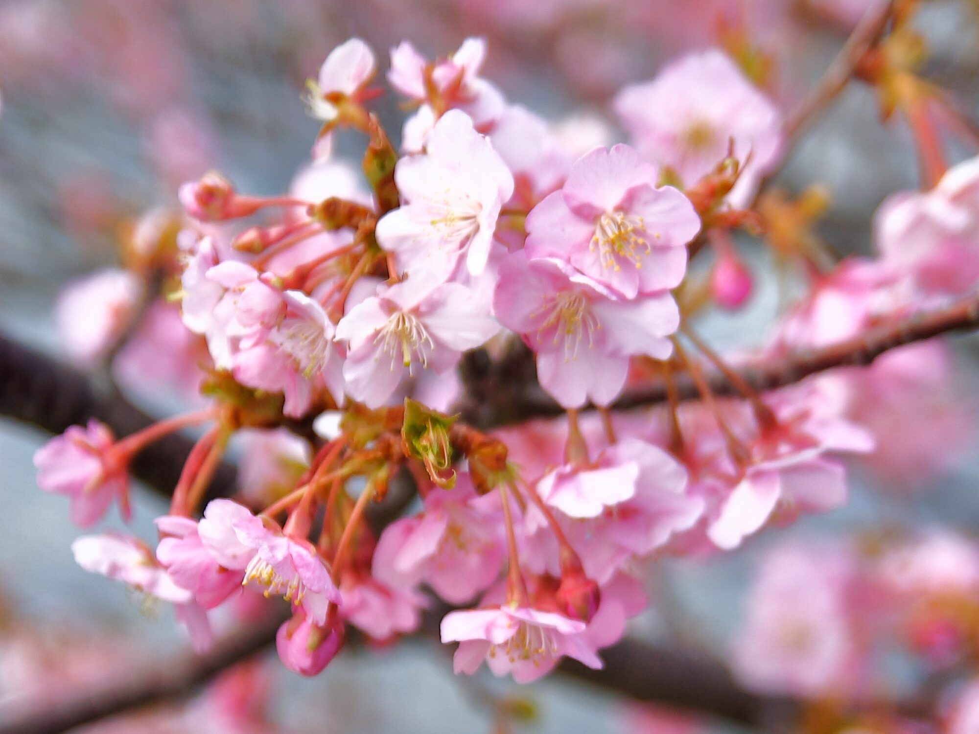 2月上旬から3月上旬までの、まだまだ寒い時期から早咲きする事で有名な河津桜。
