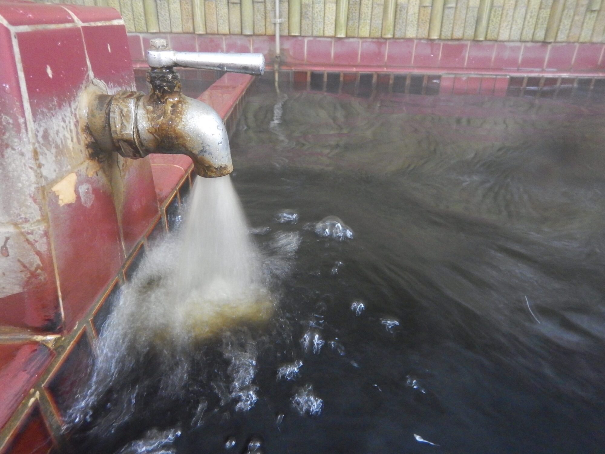 大田区や川崎周辺に沸く温泉と同じ、アメリカンコーヒーを更に少し薄くしたような真っ黒なお湯です。