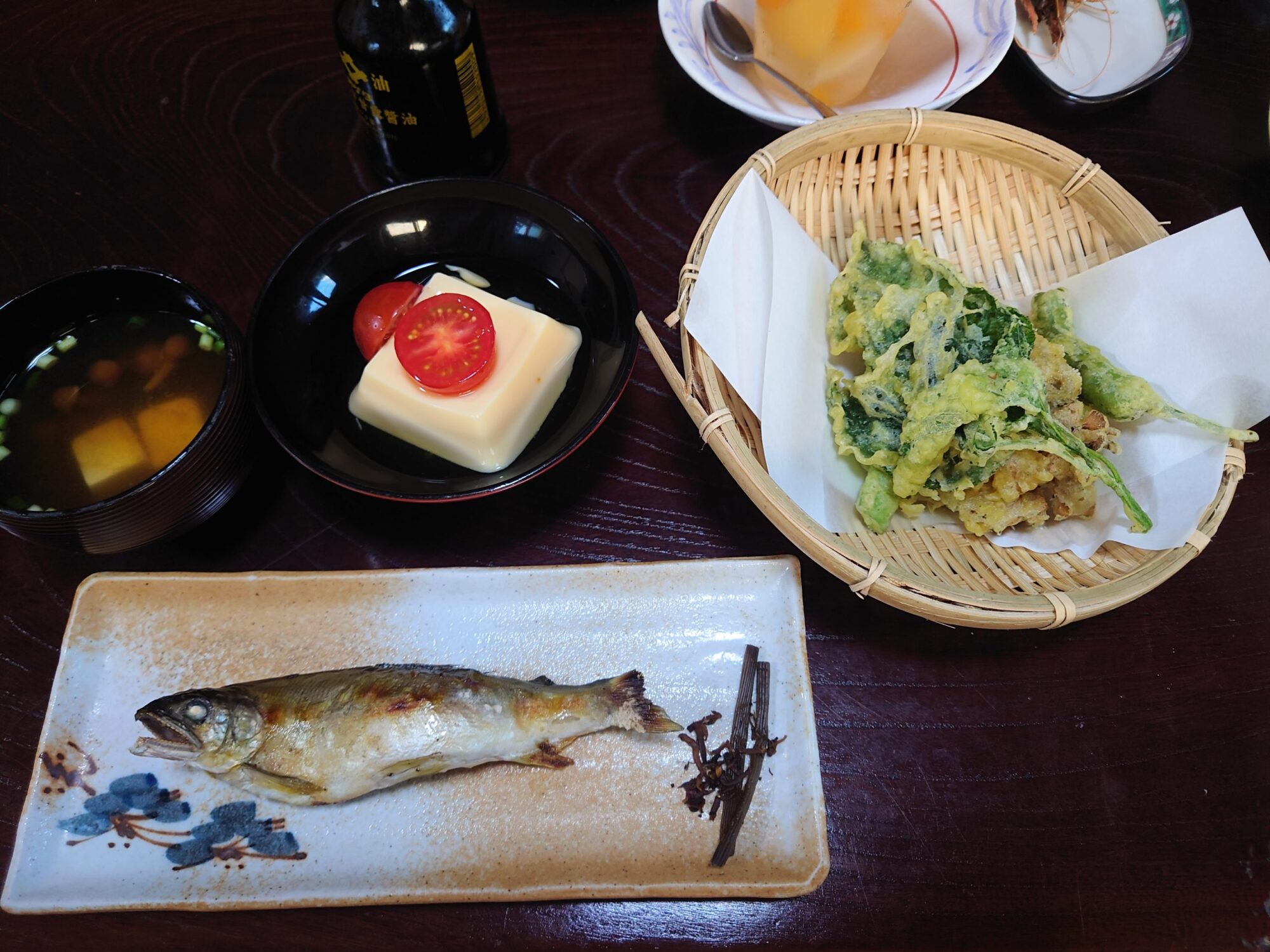 食事は部屋出しで、素朴ながらもボリュームたっぷりでした。