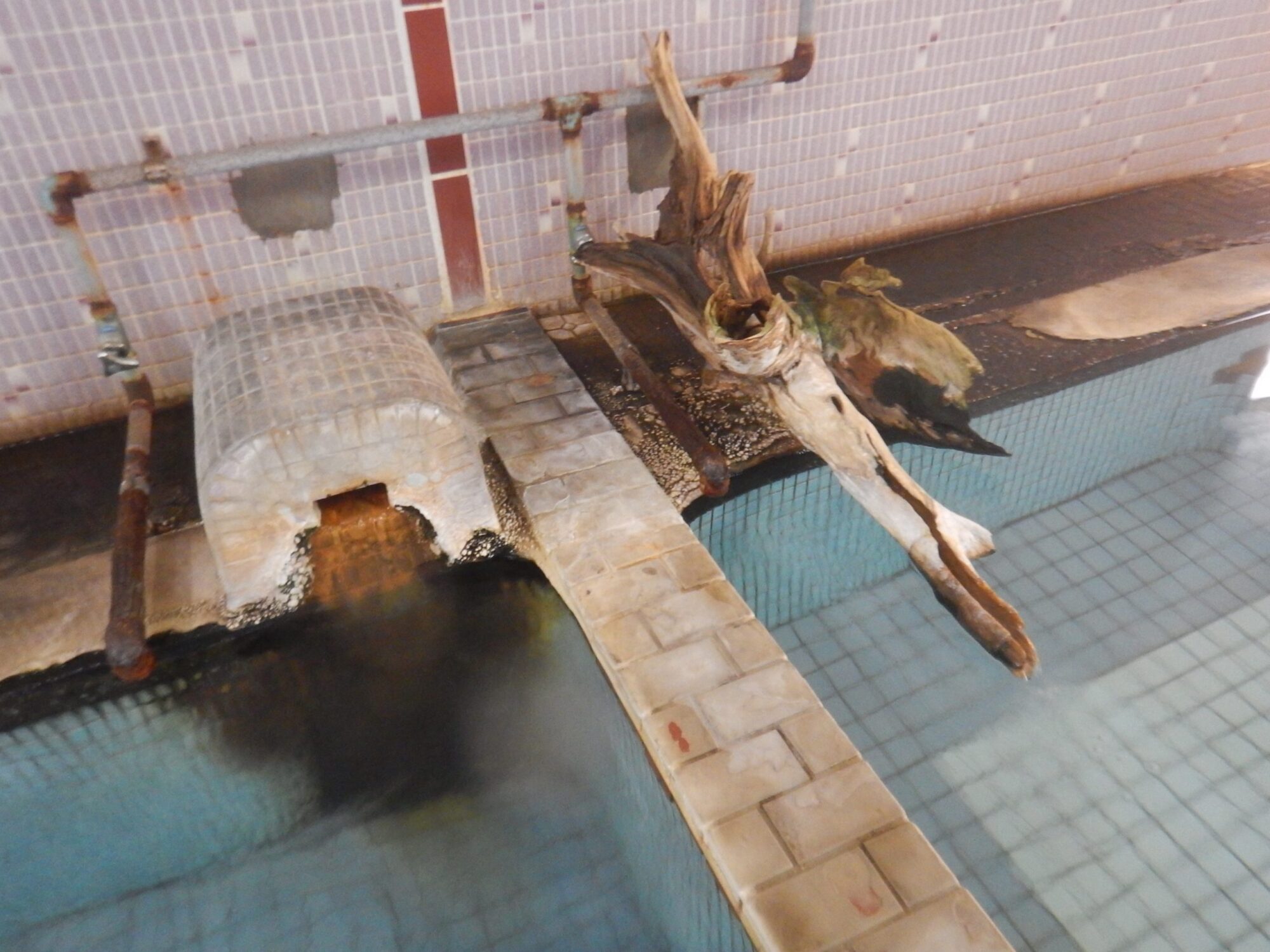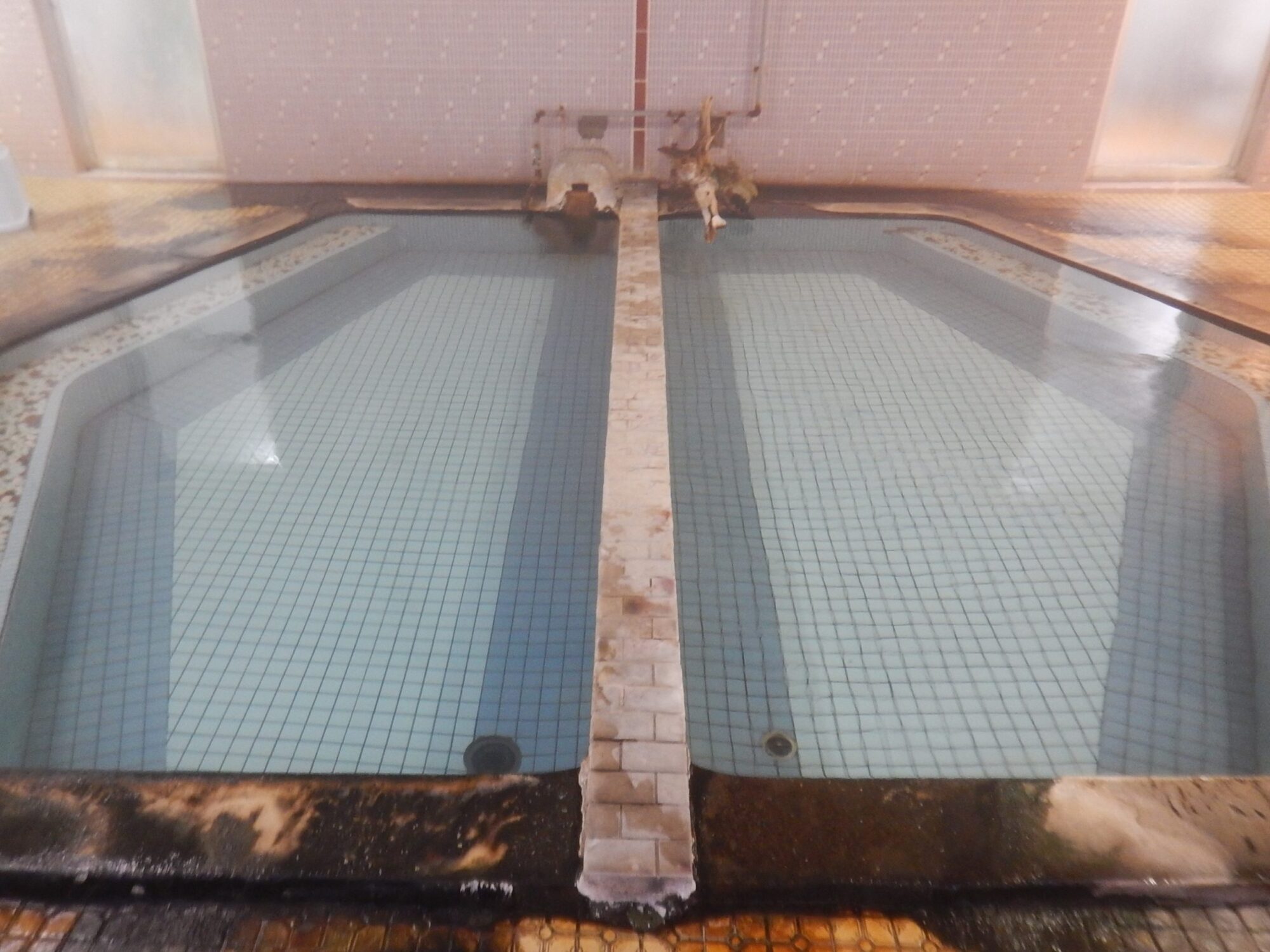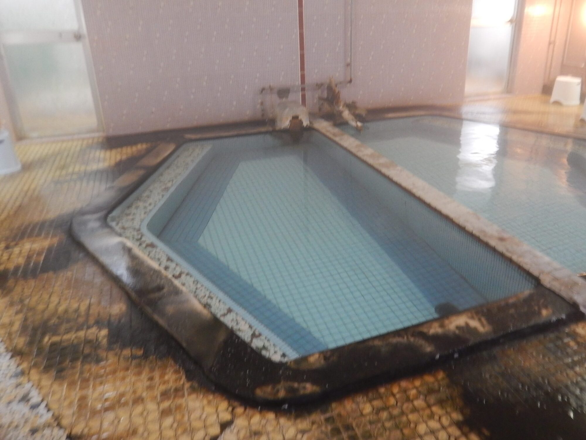 元々は男女混浴の大浴場ひとつのみだったのでしょうか、男性用の大浴場には脱衣所が2箇所あり、そのどちらからも同じ浴室へと繋がっています。
