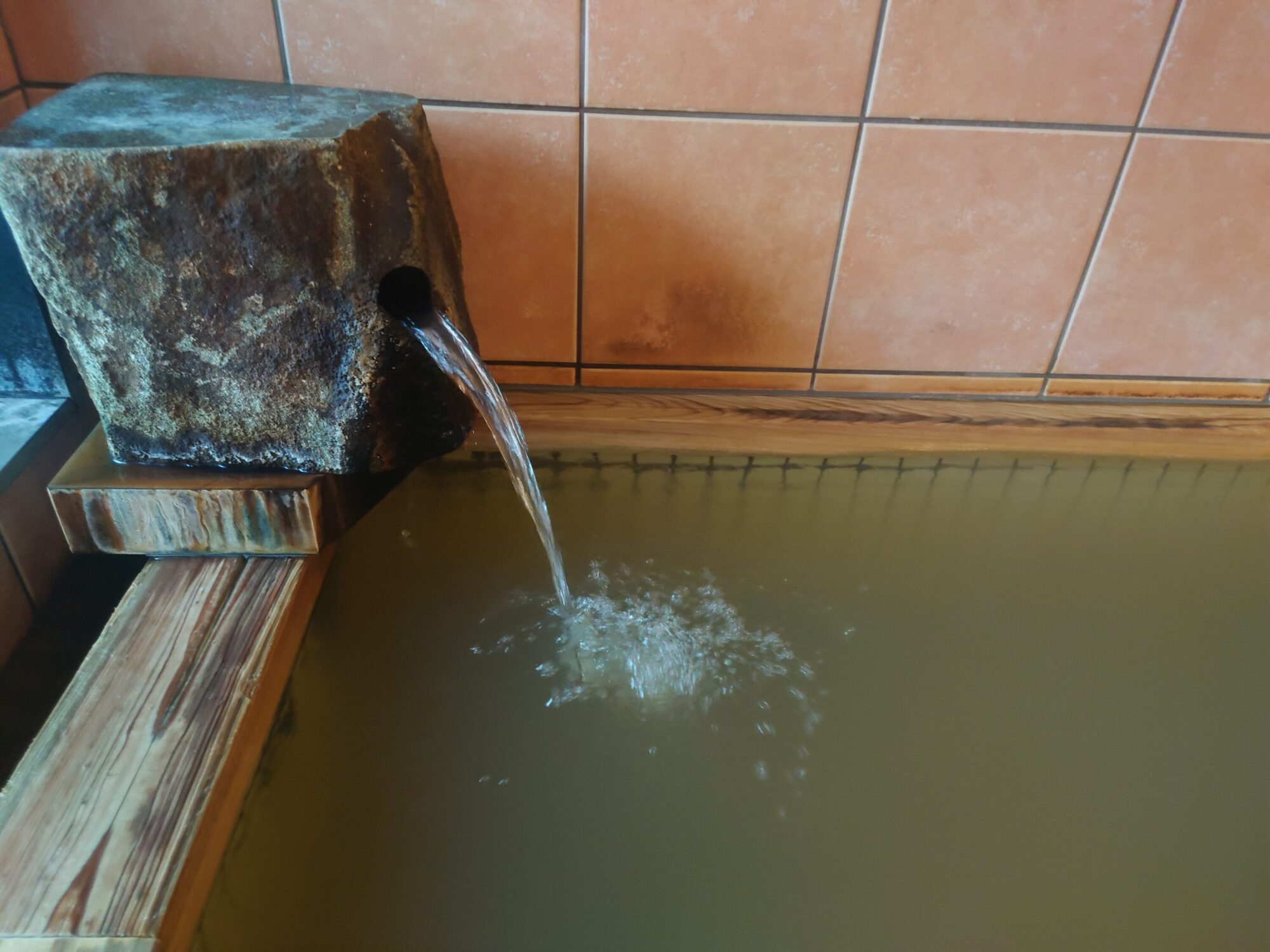 湯口のお湯を口に含むと、ほんのり塩味と、ダシのような金気味。