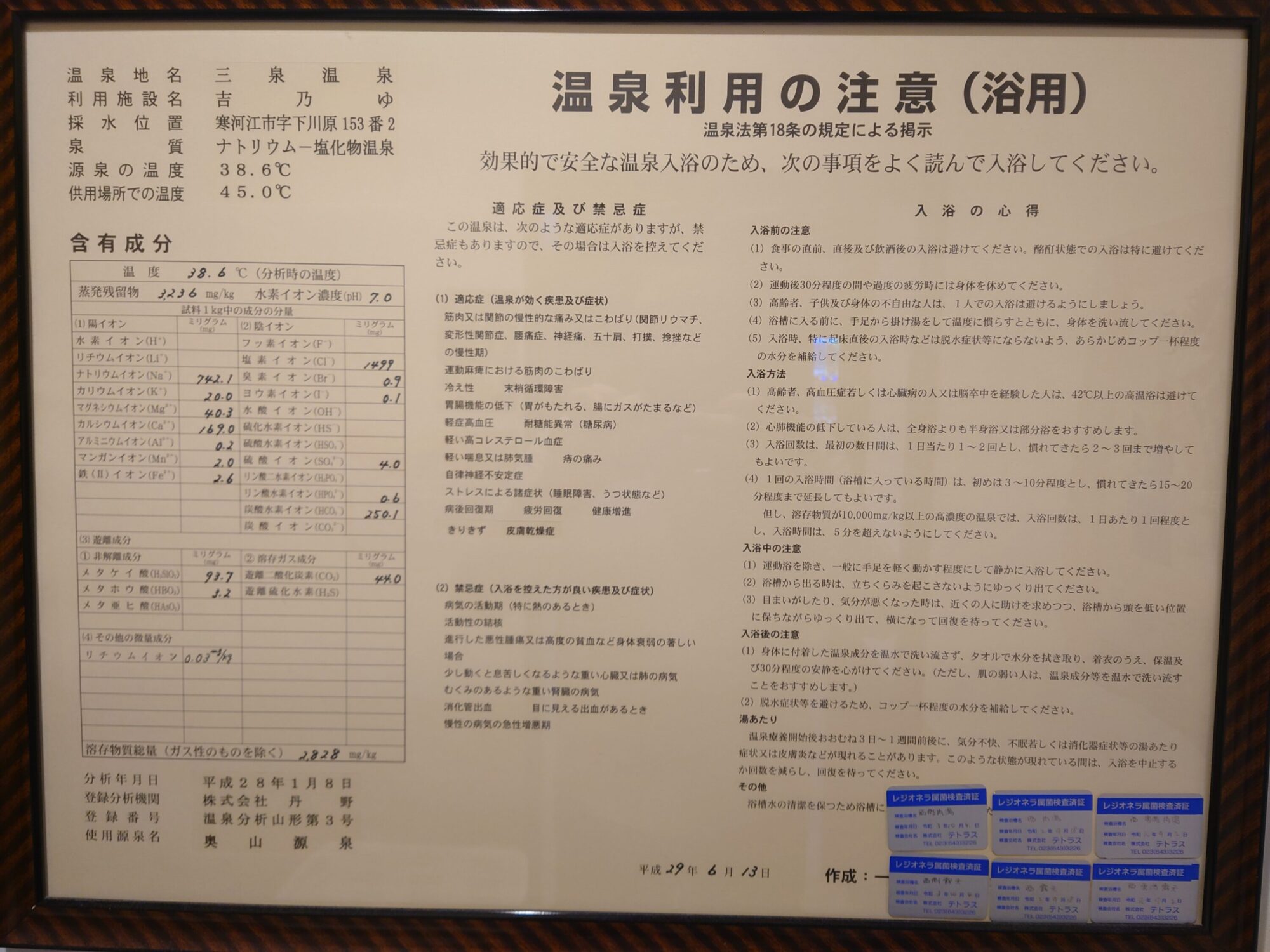 (源泉名:奥山源泉) 38.6度 / ph7.0 / H28.1.8
