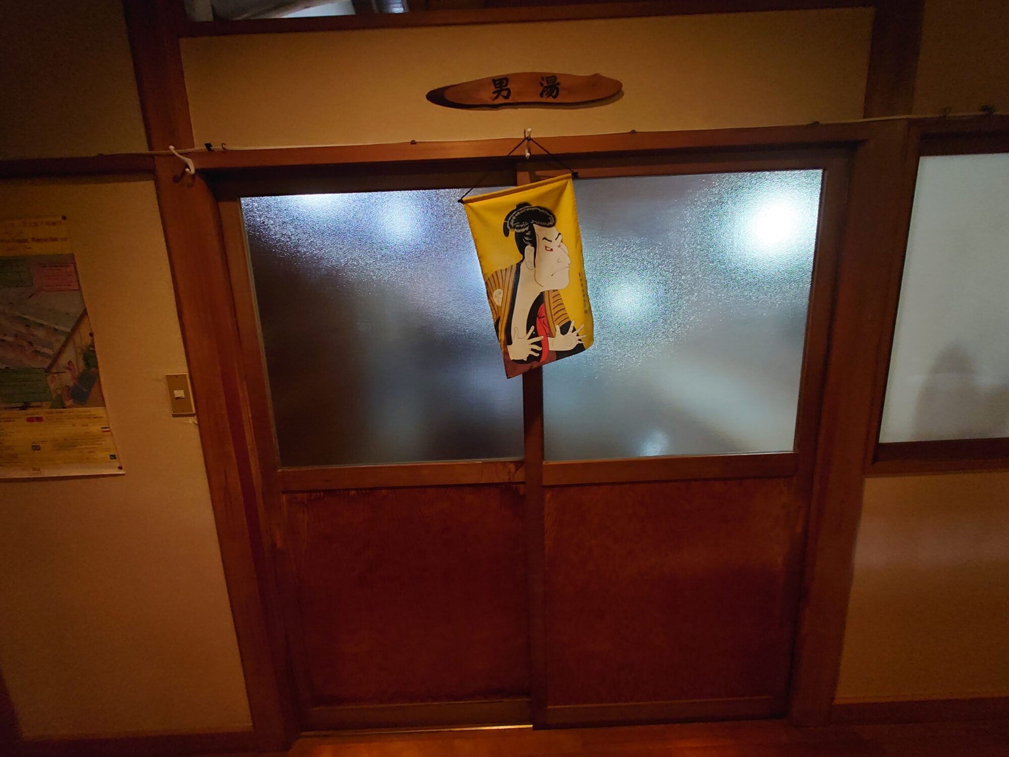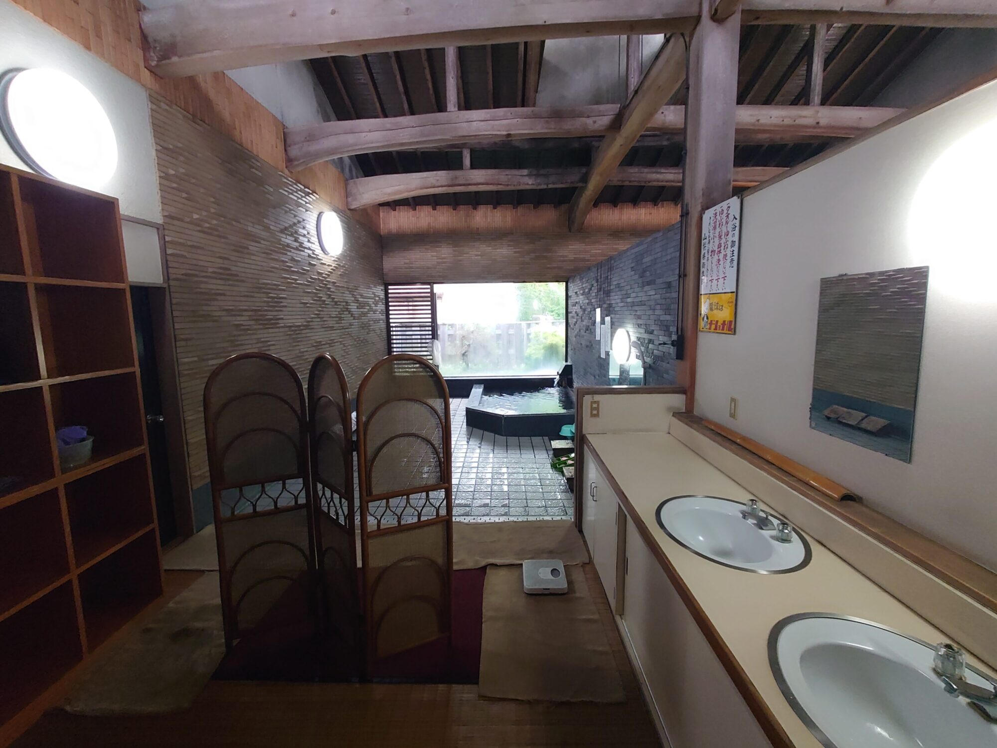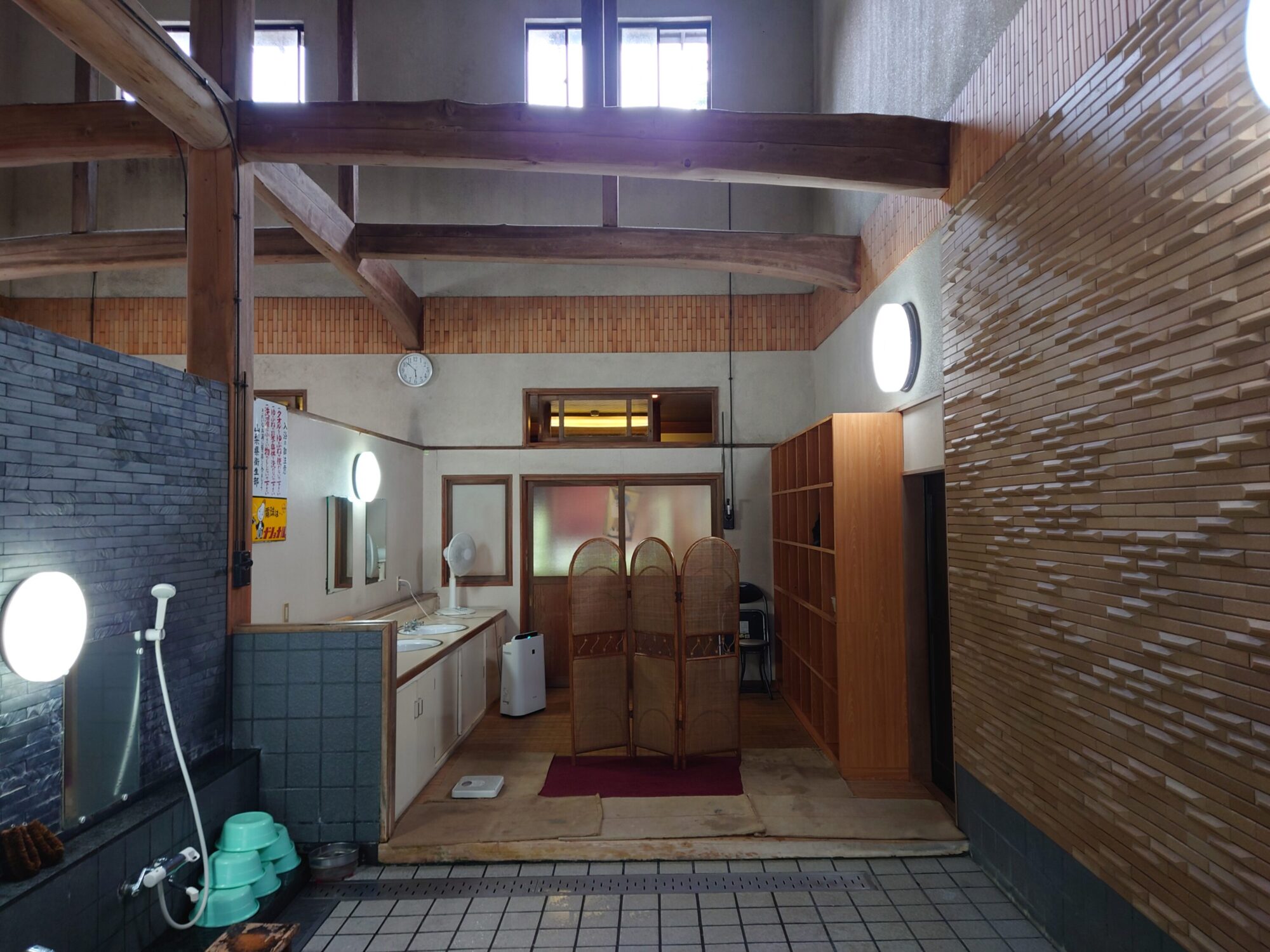 天井には太い梁が渡されていて、女湯側と繋がっています。