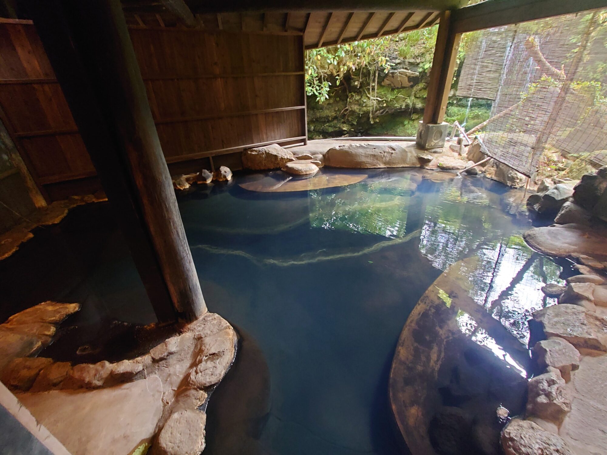 お湯が外の光に照らされてほんの少し青く見えます。