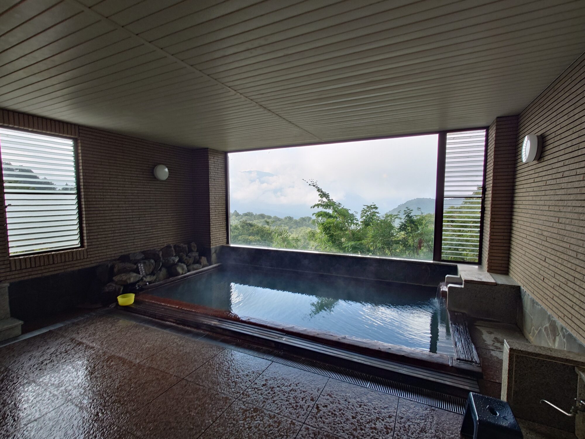 広々とした湯舟がひとつあり、正面は大きなガラス張り。