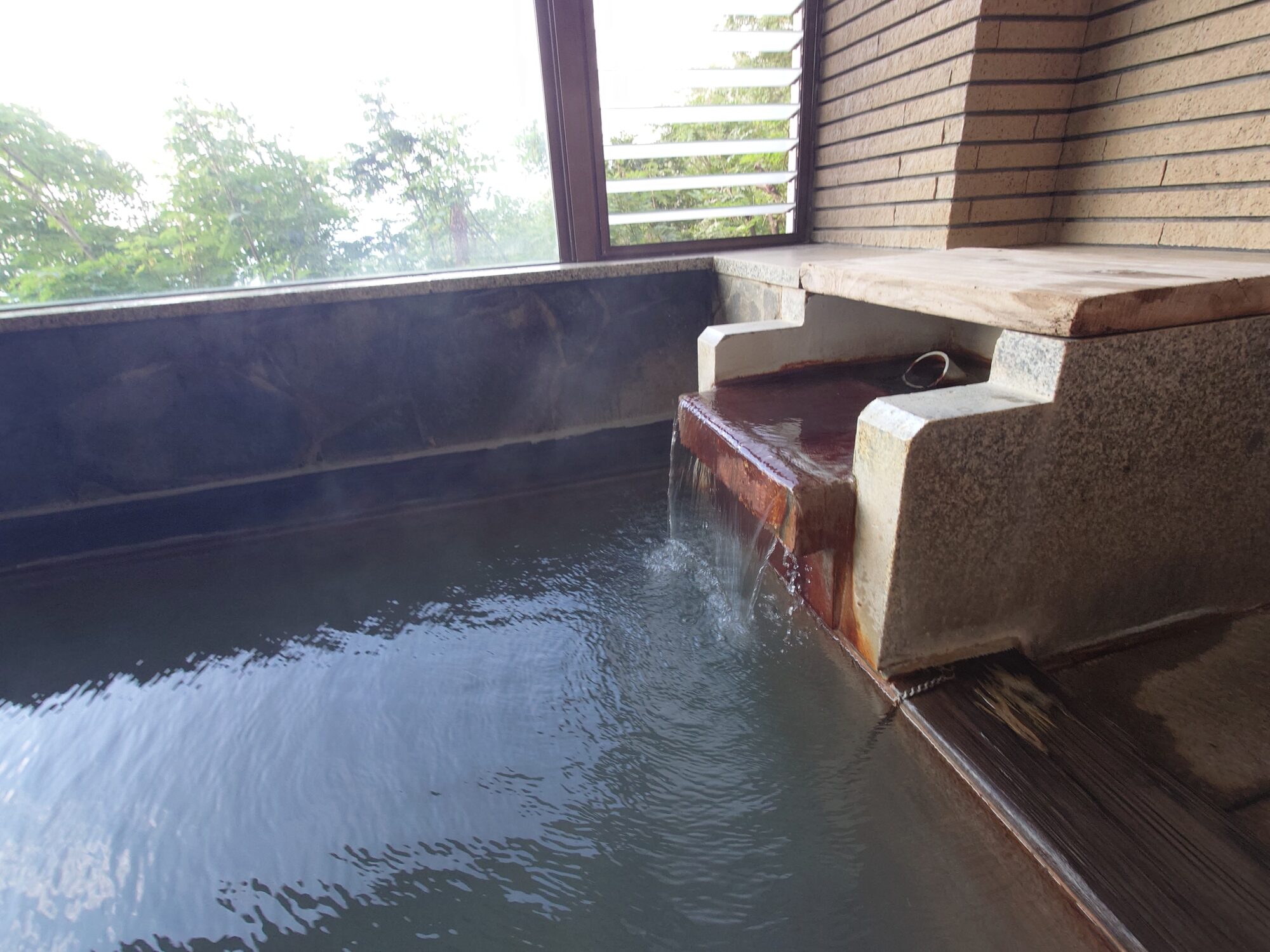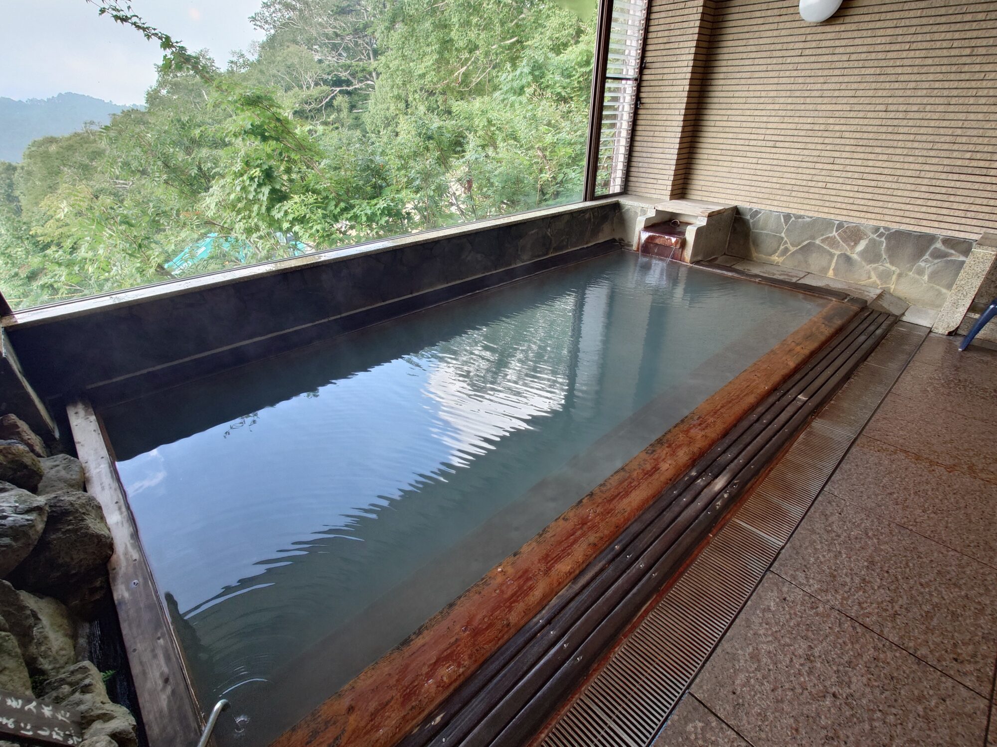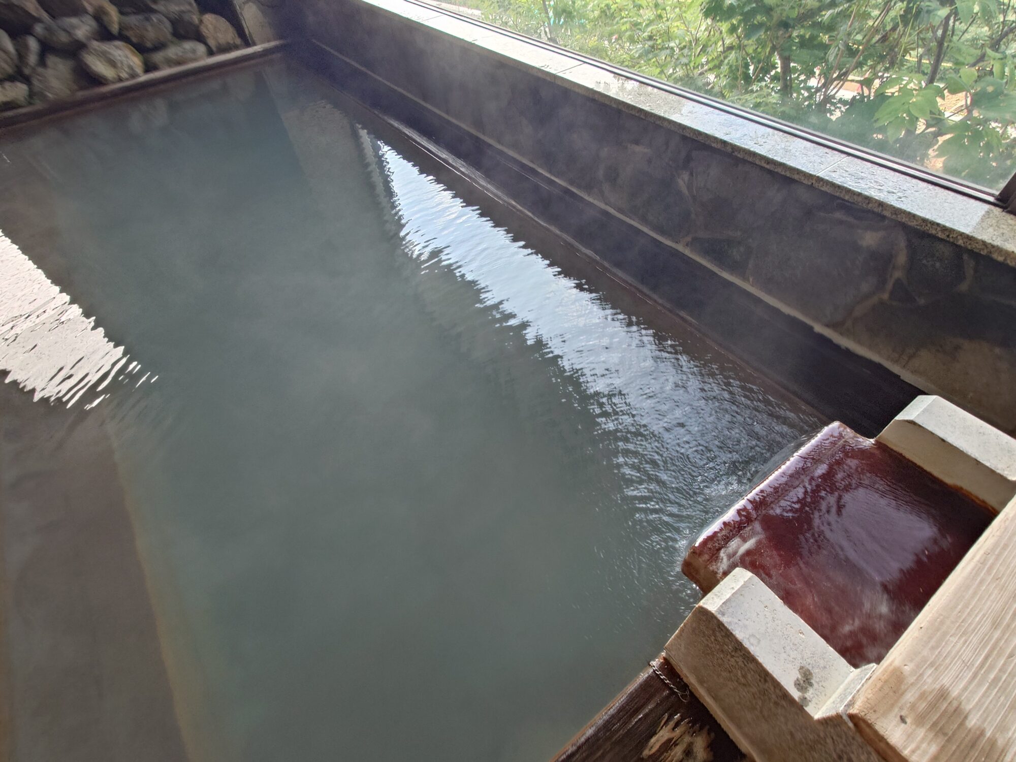 お湯は光の加減で僅かに青白濁して見えます。