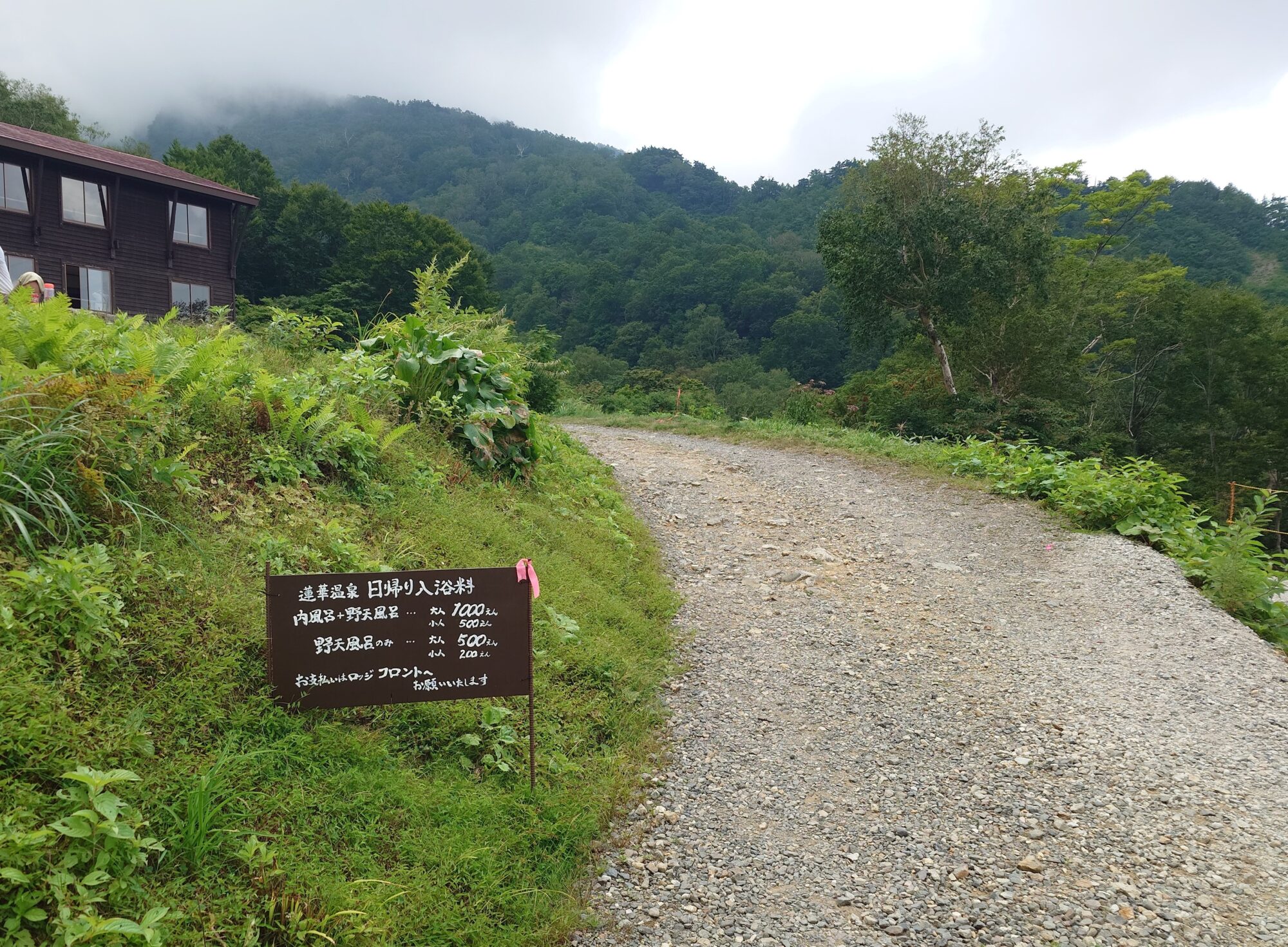 ちなみに入浴料ですが、野天風呂だけだと500円、ロッジの内湯と野天セットだと1000円。じゃあロッジの内湯だけなら幾らかと思ったら、これも1000円です。野天セットと変わらないんですよね。