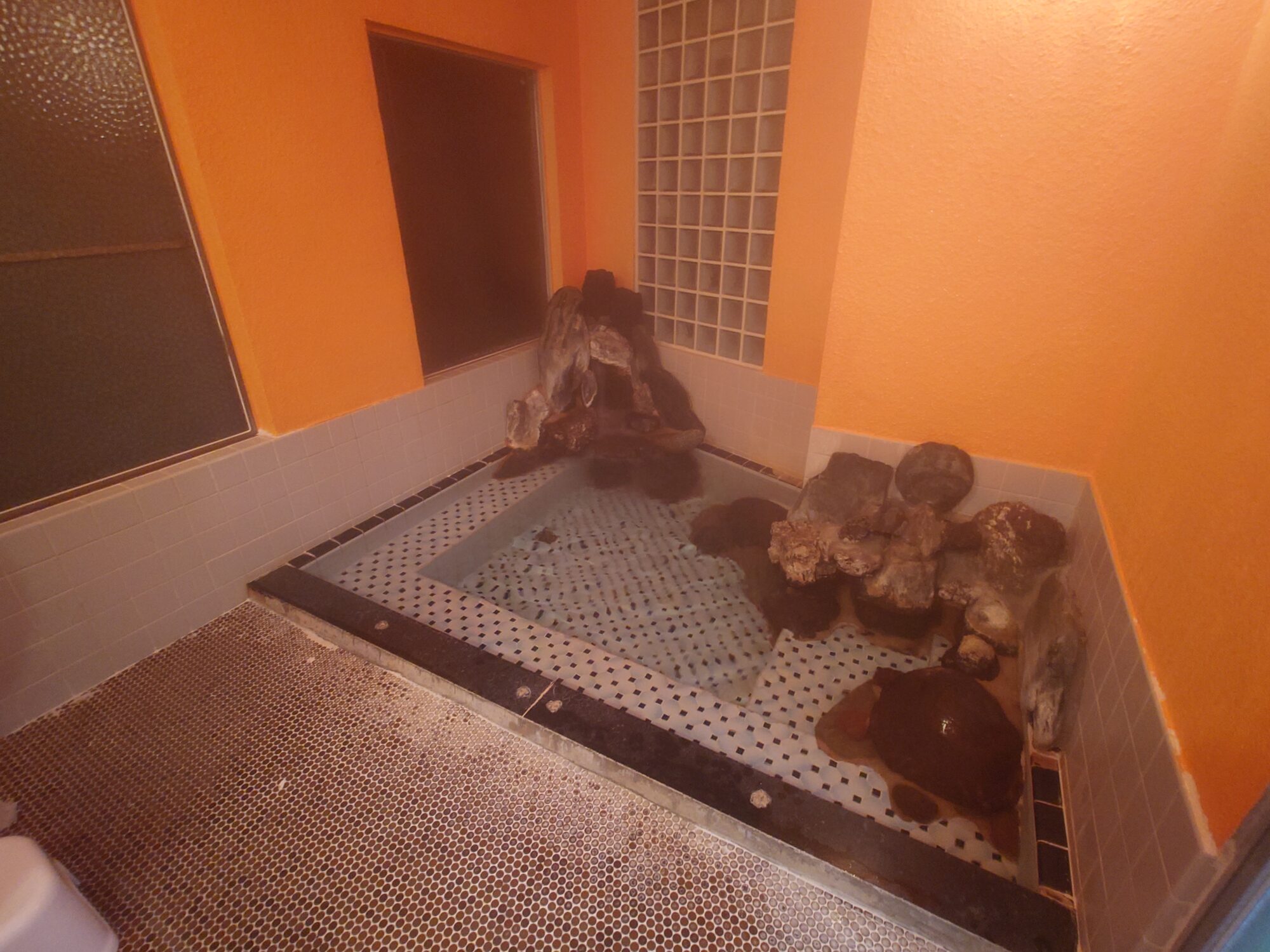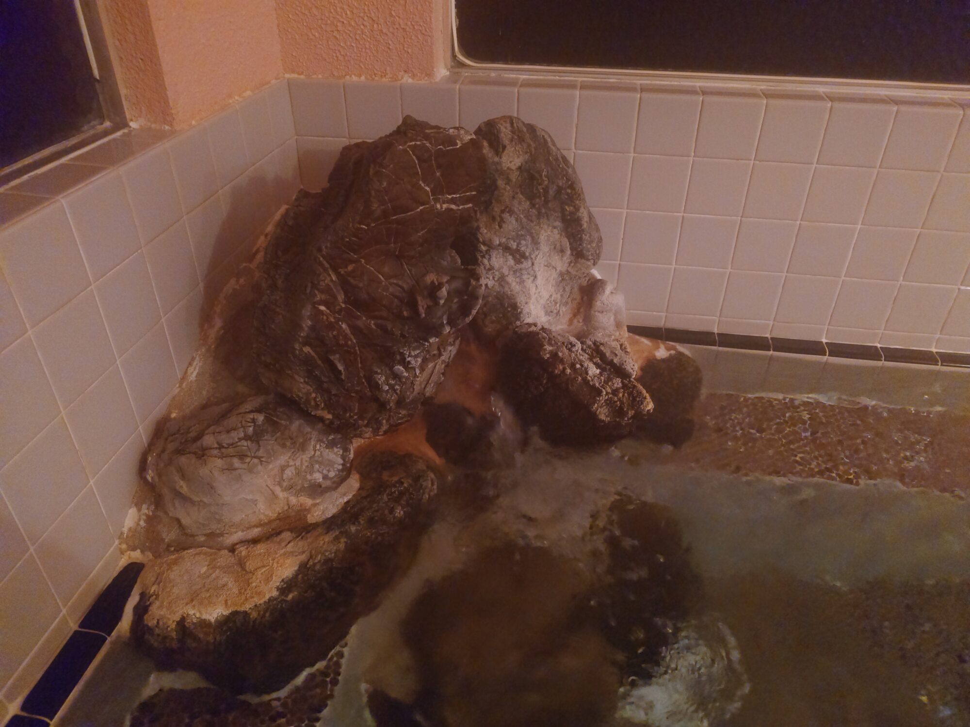 基本的にタイル湯舟なのですが、一部には岩が配されており、岩風呂風になっていました。