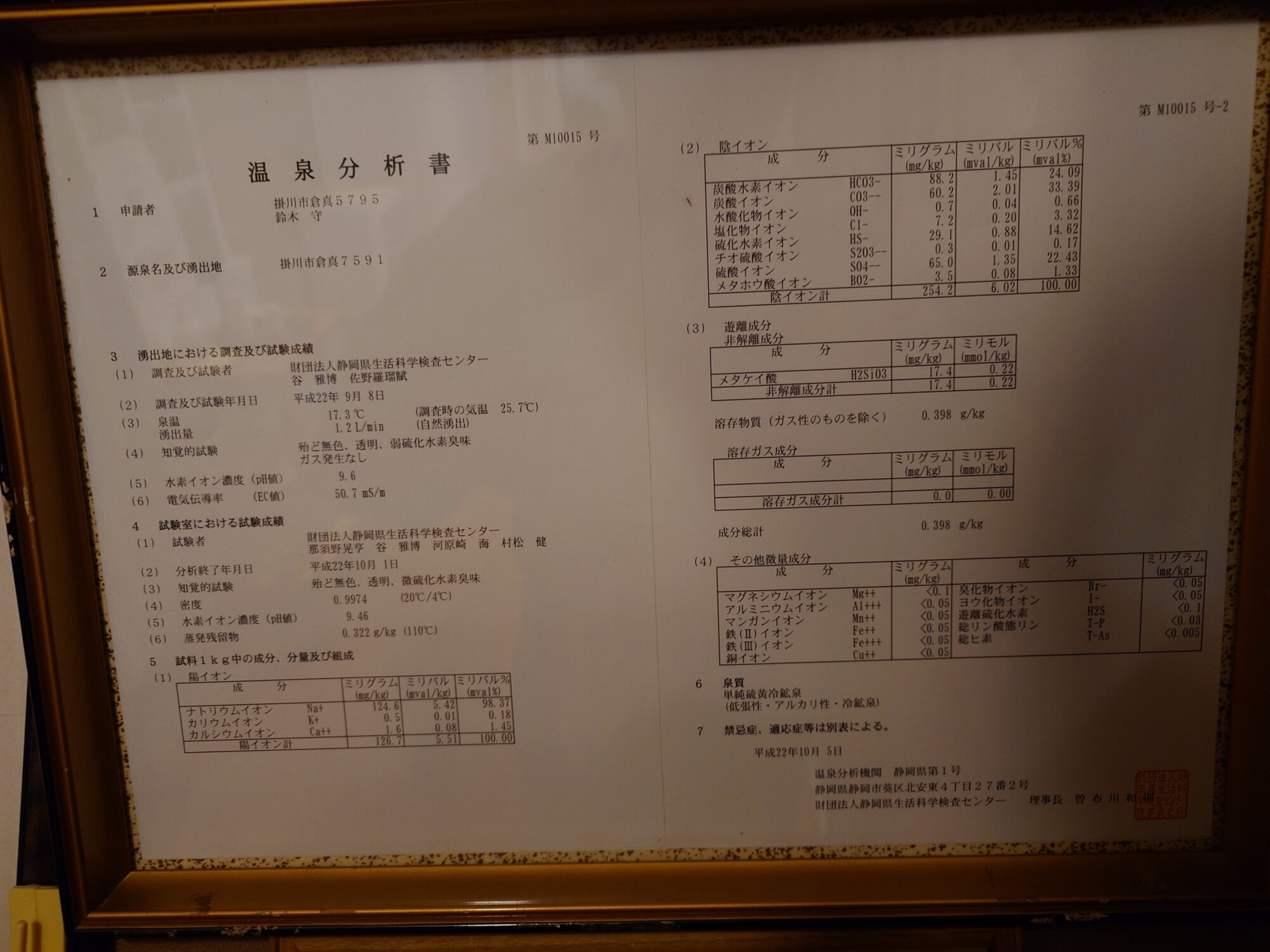 17.3度 / pH9.6 / 毎分1.2L / 自然湧出 / H22.9.8