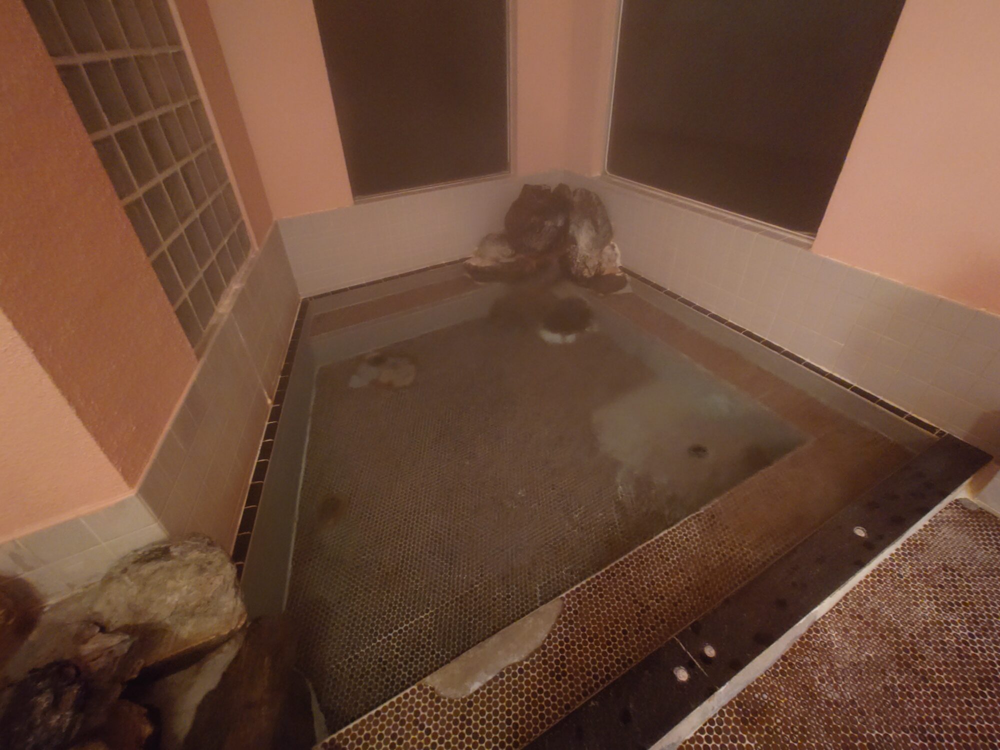 タイル張りで一部が岩と言う造りは一緒ですが、湯舟そのもののサイズはこっちの方が広いです。