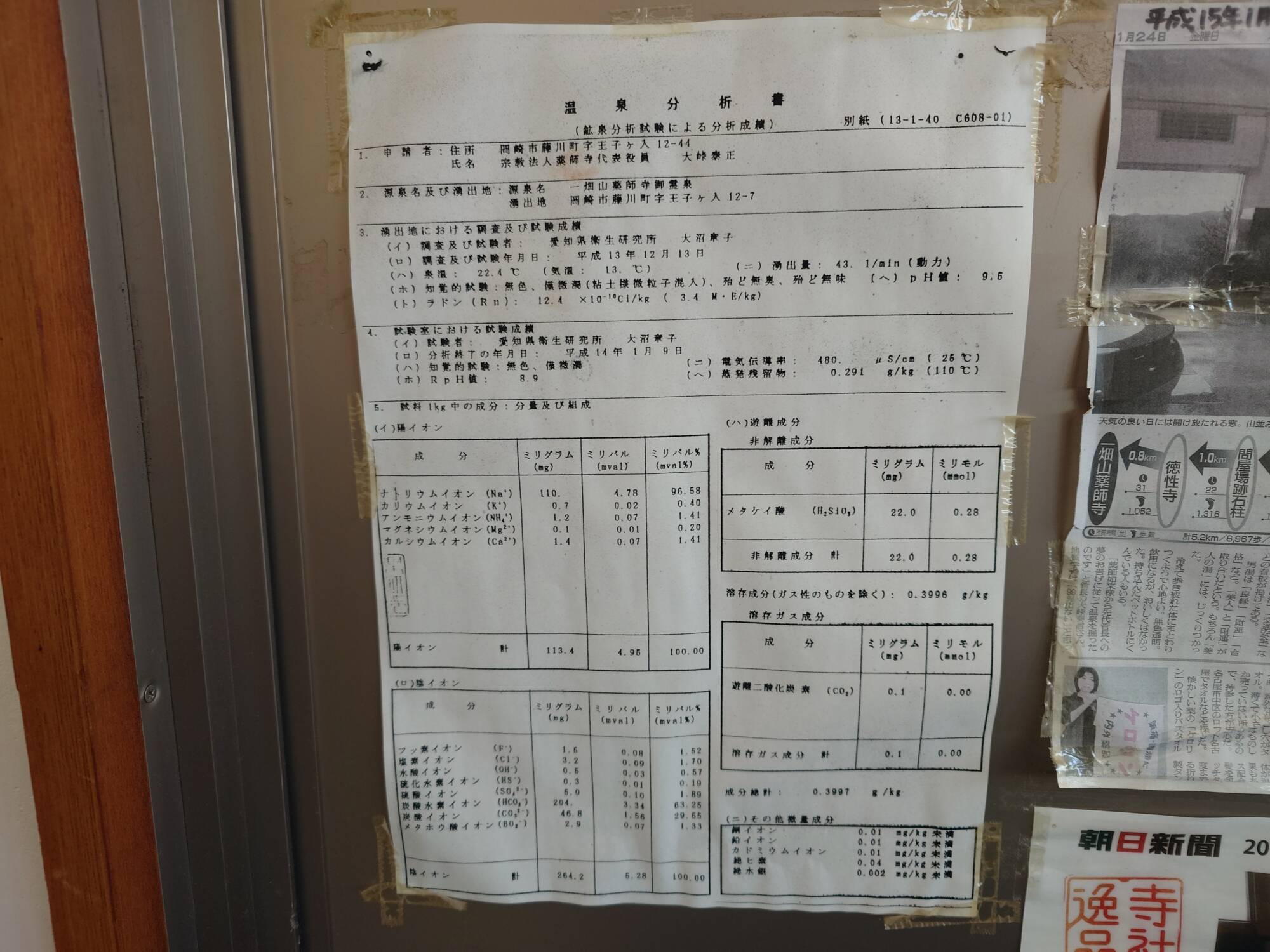 事実少し気になったのは、お寺が温泉として紹介しているこのお湯なんですけど、廊下に掲示されていた成分表の掲示を見る限りでは、温泉法上の鉱泉ですらありません。