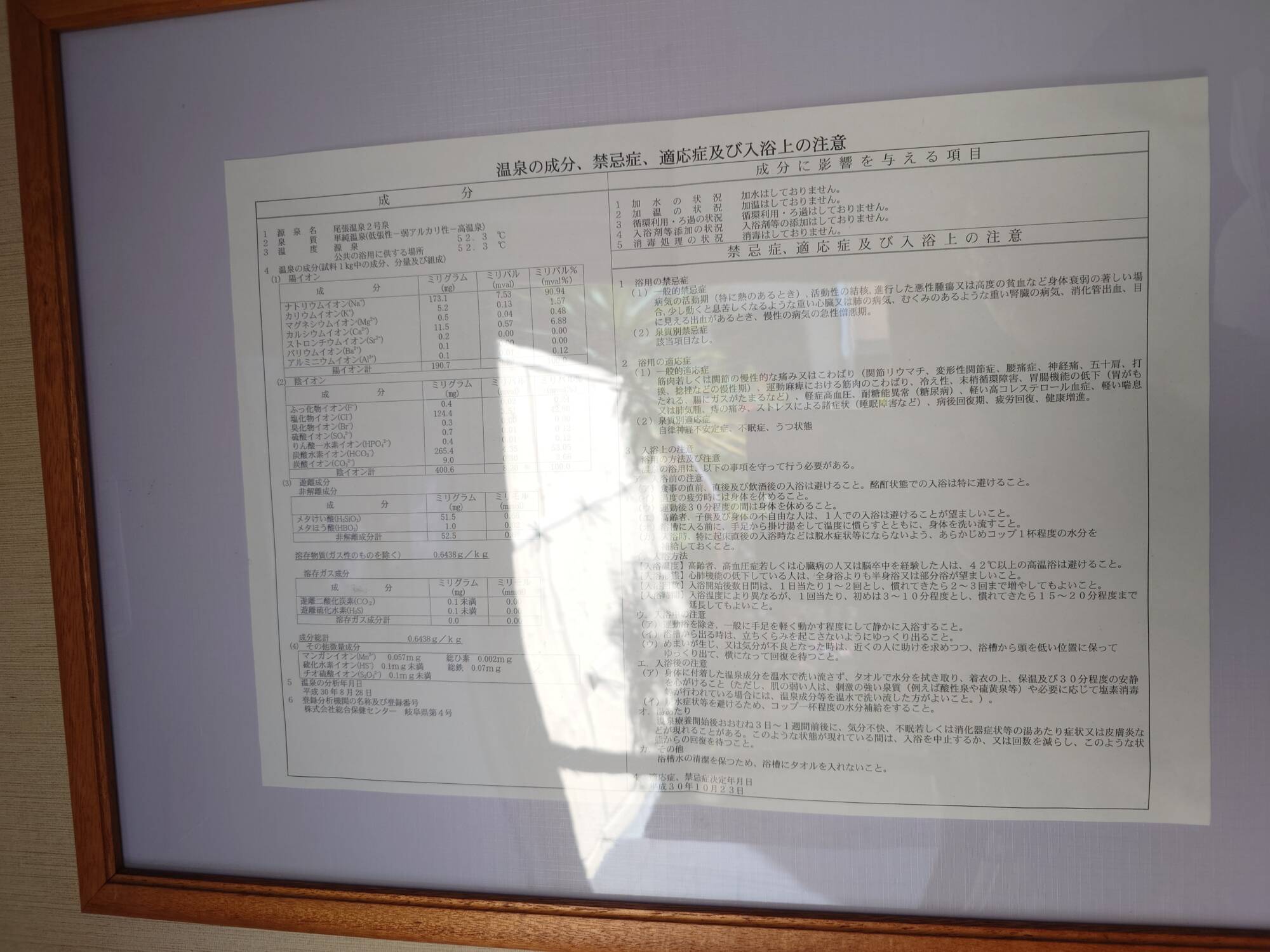 成分表で見る限りでは単純泉だそうですが、入っている時はもう少し濃いお湯だと思っていました。