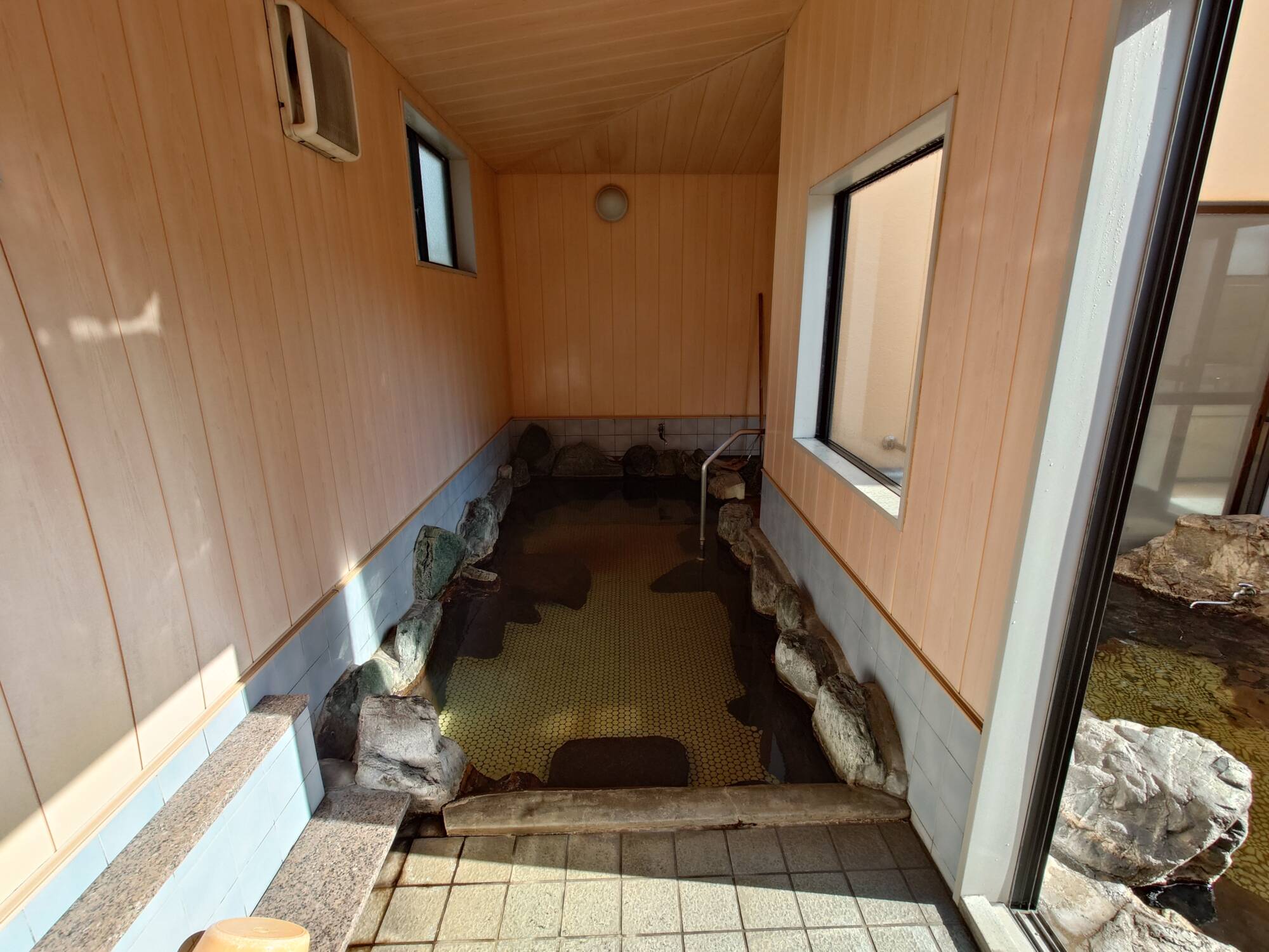 内湯と露天、どちらもお湯も僅かに黄味がかっていますが濁りは無く、湯底はしっかりと見えます。