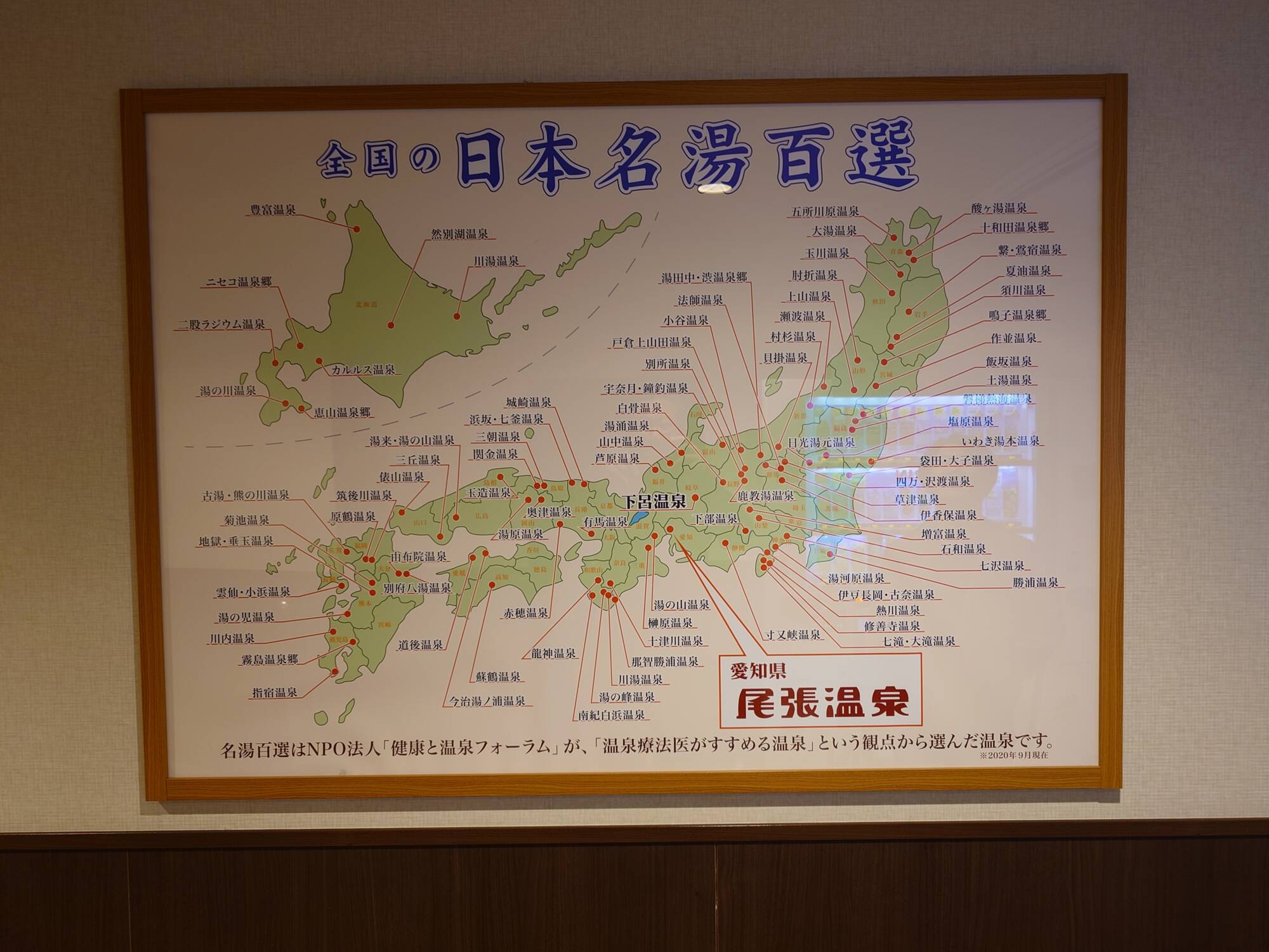 浴室の手前の目立つ所にには「日本名湯百選」の地図が貼り出されていました。