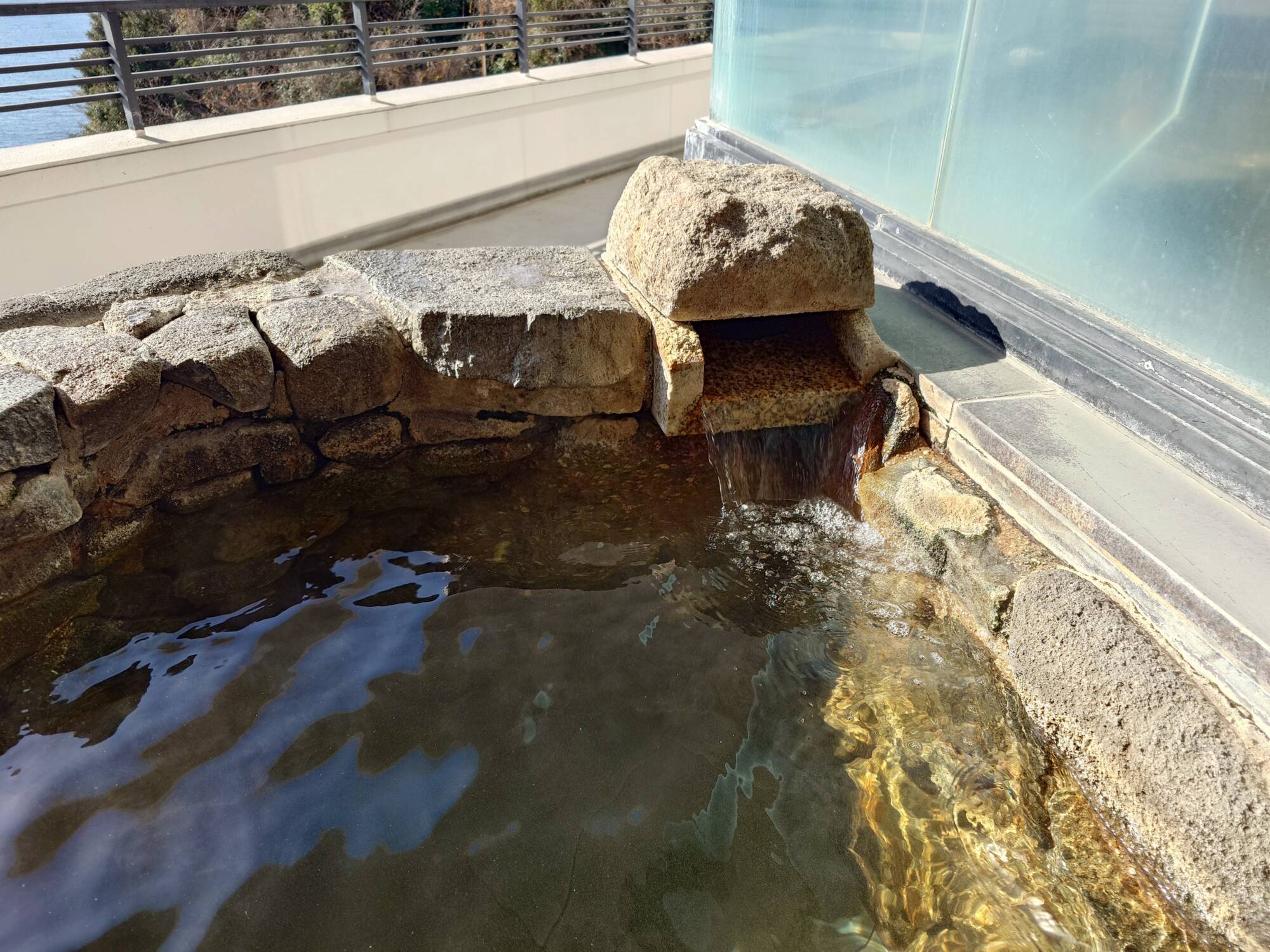 この露天のお湯も加温循環されており、少し塩素臭がします。