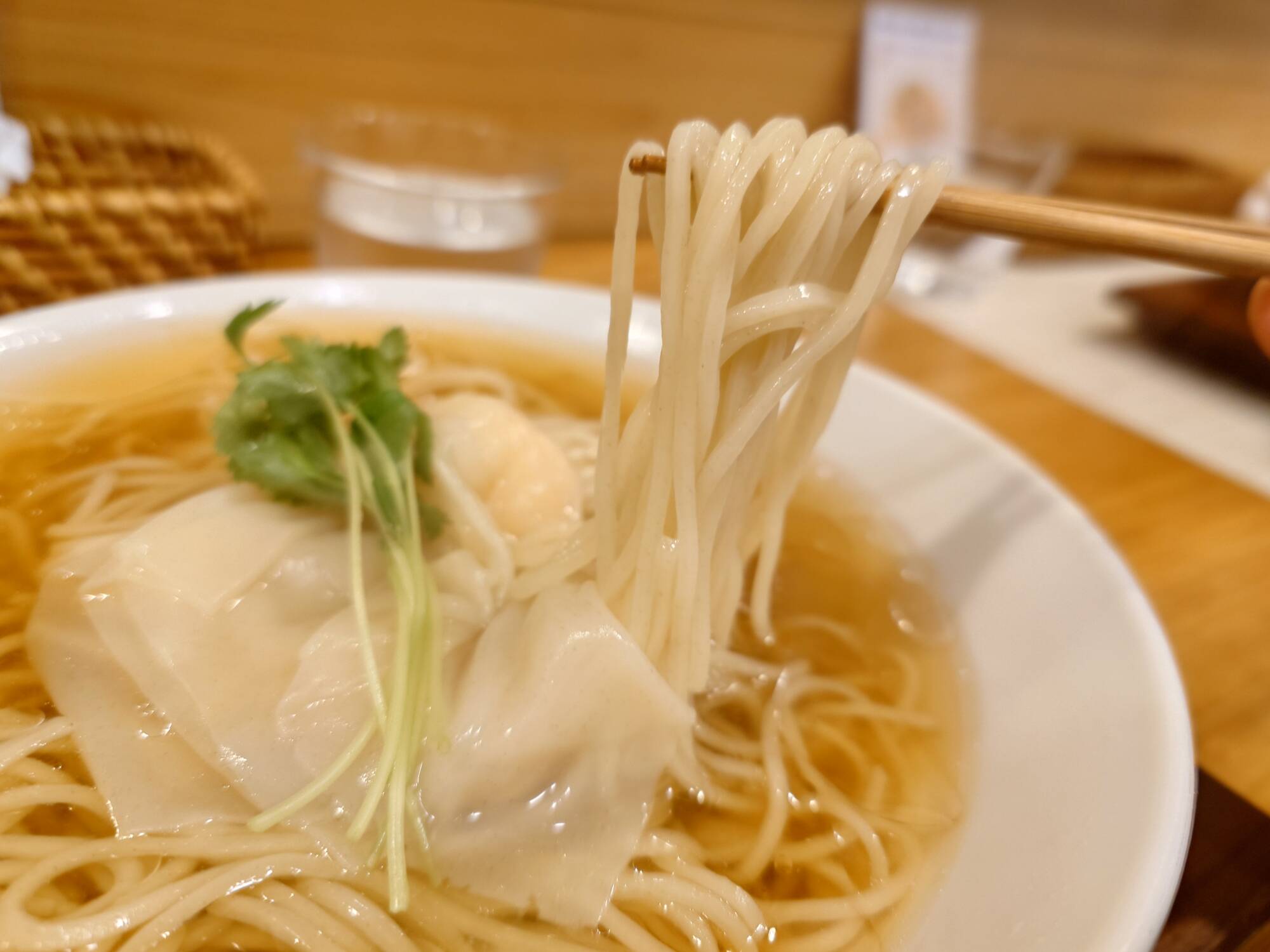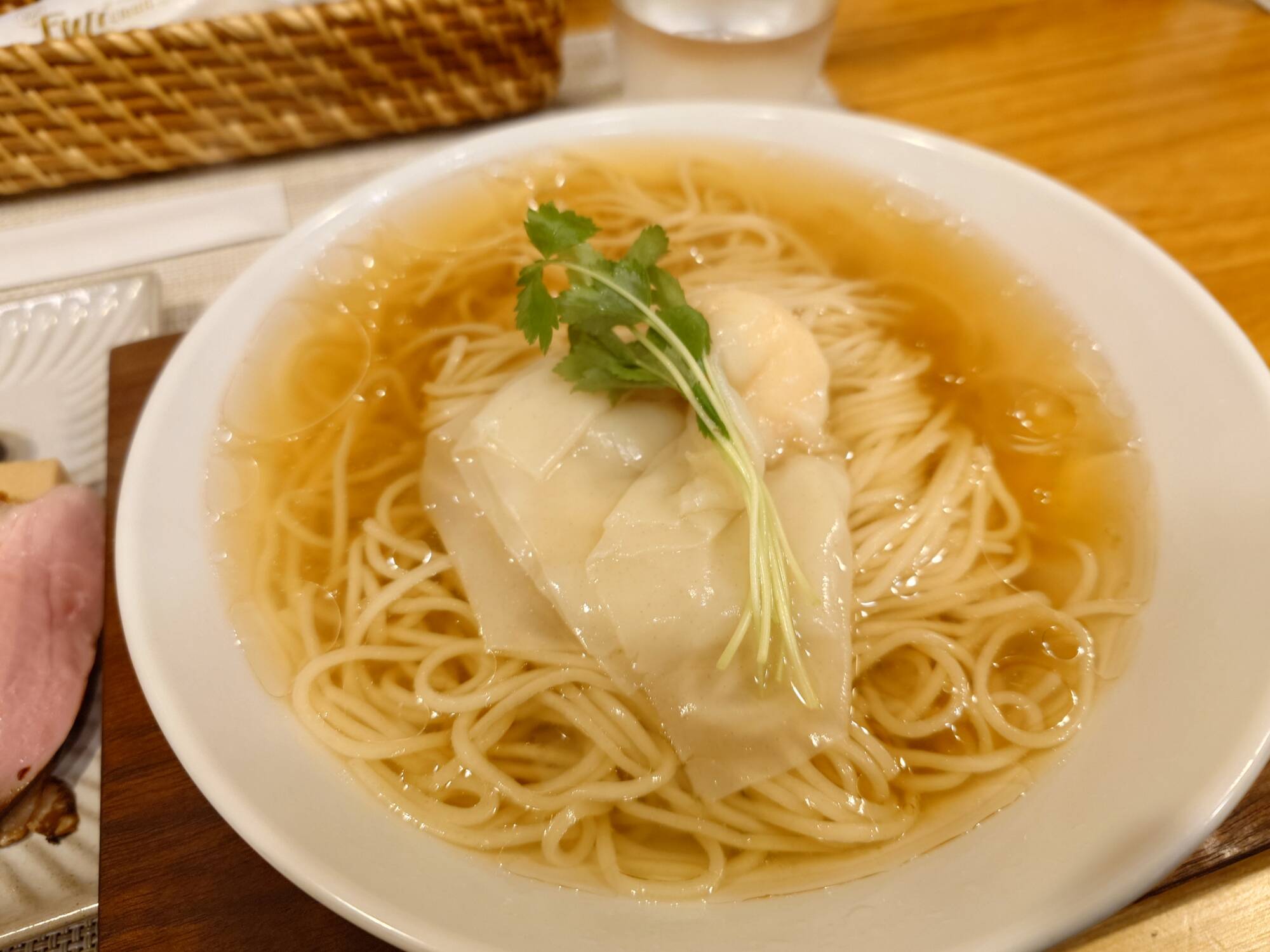 ラーメンの上にはワンタンと三つ葉だけが乗っています。