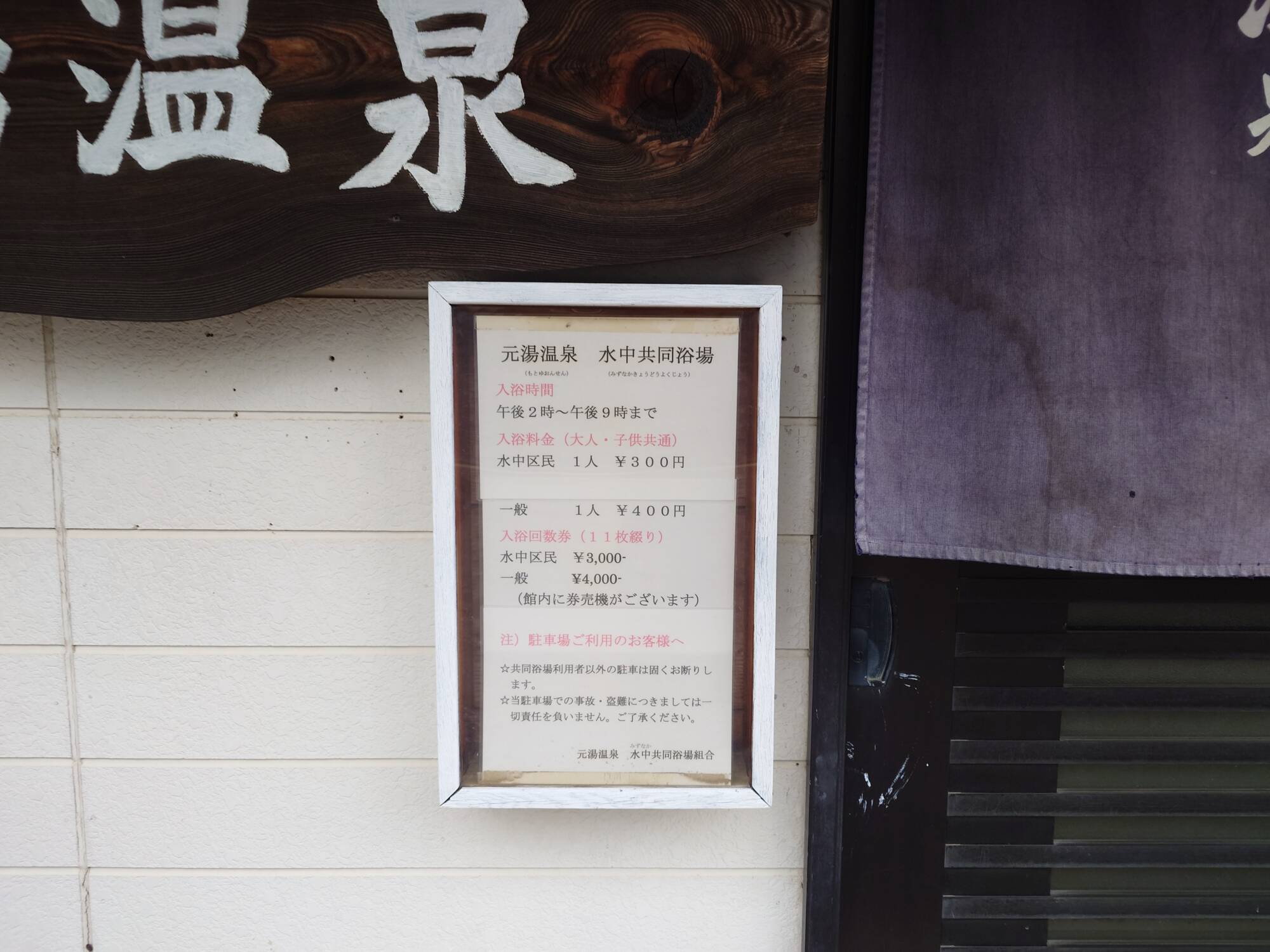 水中(みずなか)共同浴場とも併記されており、水中区民は割引価格で入れるようです。