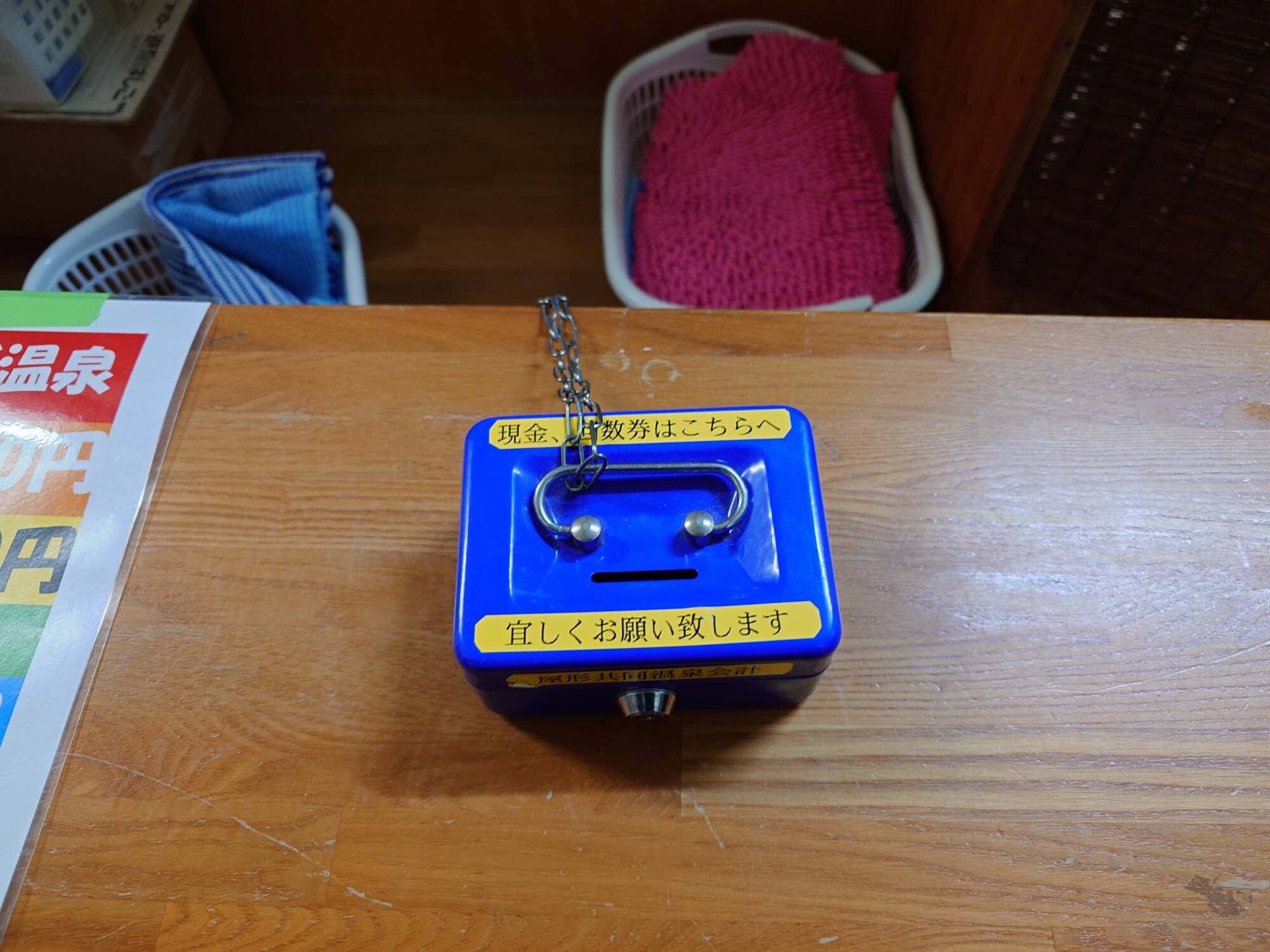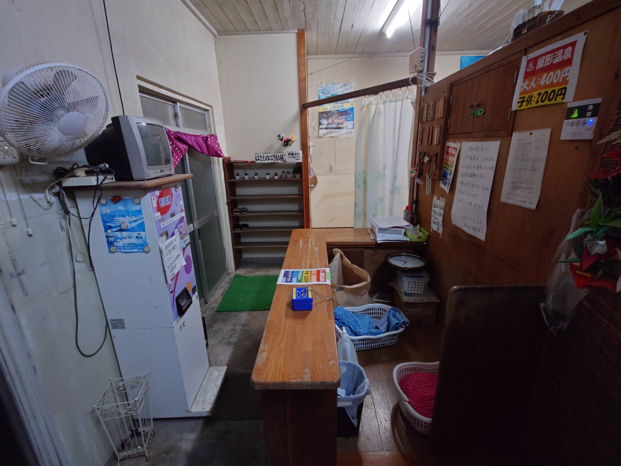 丁寧に開けなければ壊れてしまいそうな引き戸を開けると、そこには無人の番台があります。