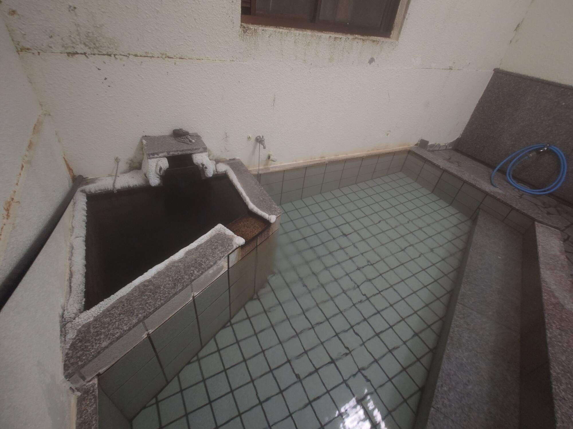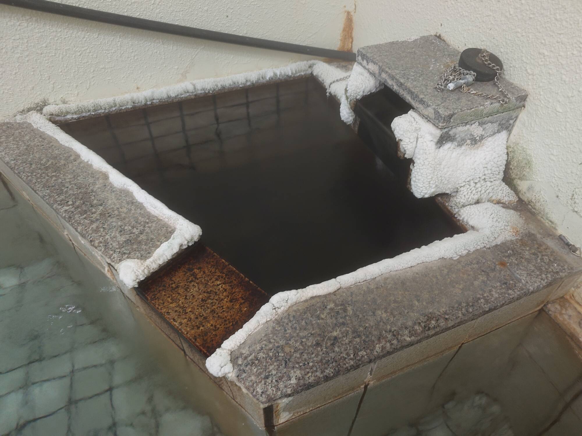 湯口が温泉成分の析出で湯口がガチガチに固まっていたのが印象的。