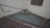 無色透明のお湯が張られていますが、溢れ出た後なのか、湯舟の縁からはだいぶ低い所に湯面があります。