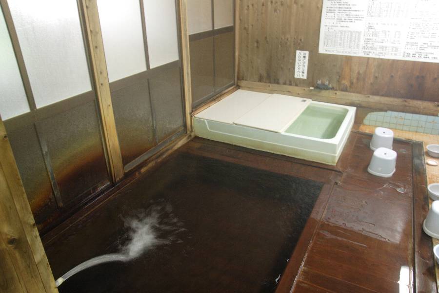 メインは手前の木造浴槽。こちらはれっきとした温泉で、源泉温度が非常に