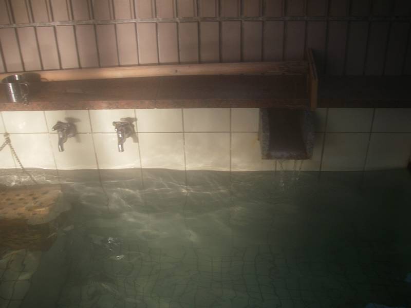 湯口からは加熱された熱い源泉がチョロチョロと注がれています。元が冷鉱泉