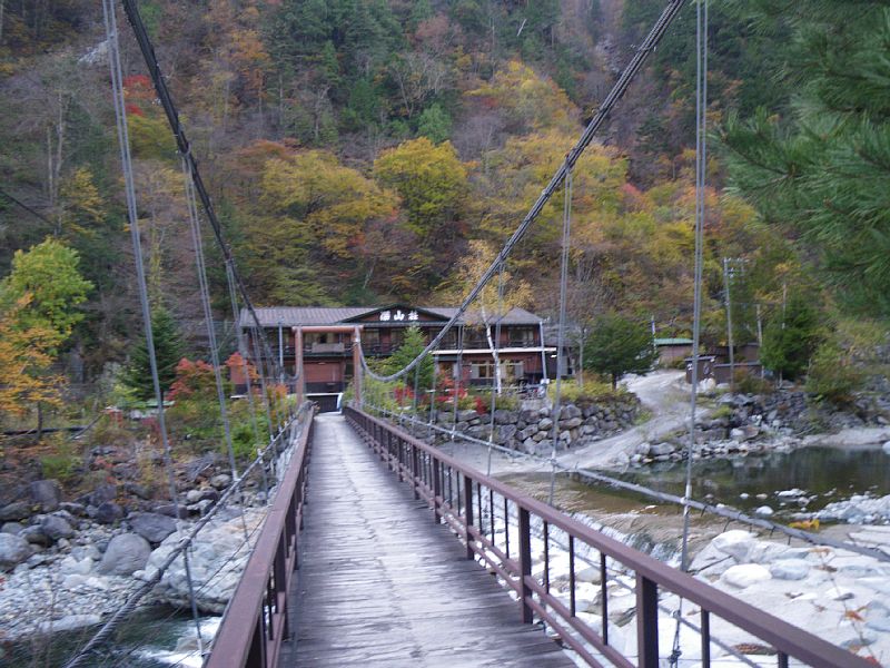 橋を歩いて行く行くアプローチが、いかにも秘湯と言う感じがします。 |